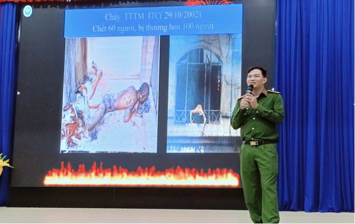 Cán bộ Phòng Cảnh sát PCCC và CNCH tuyên truyền, phổ biến nguyên nhân xảy ra các vụ cháy, nổ nguy hiểm trong thời gian gần đây