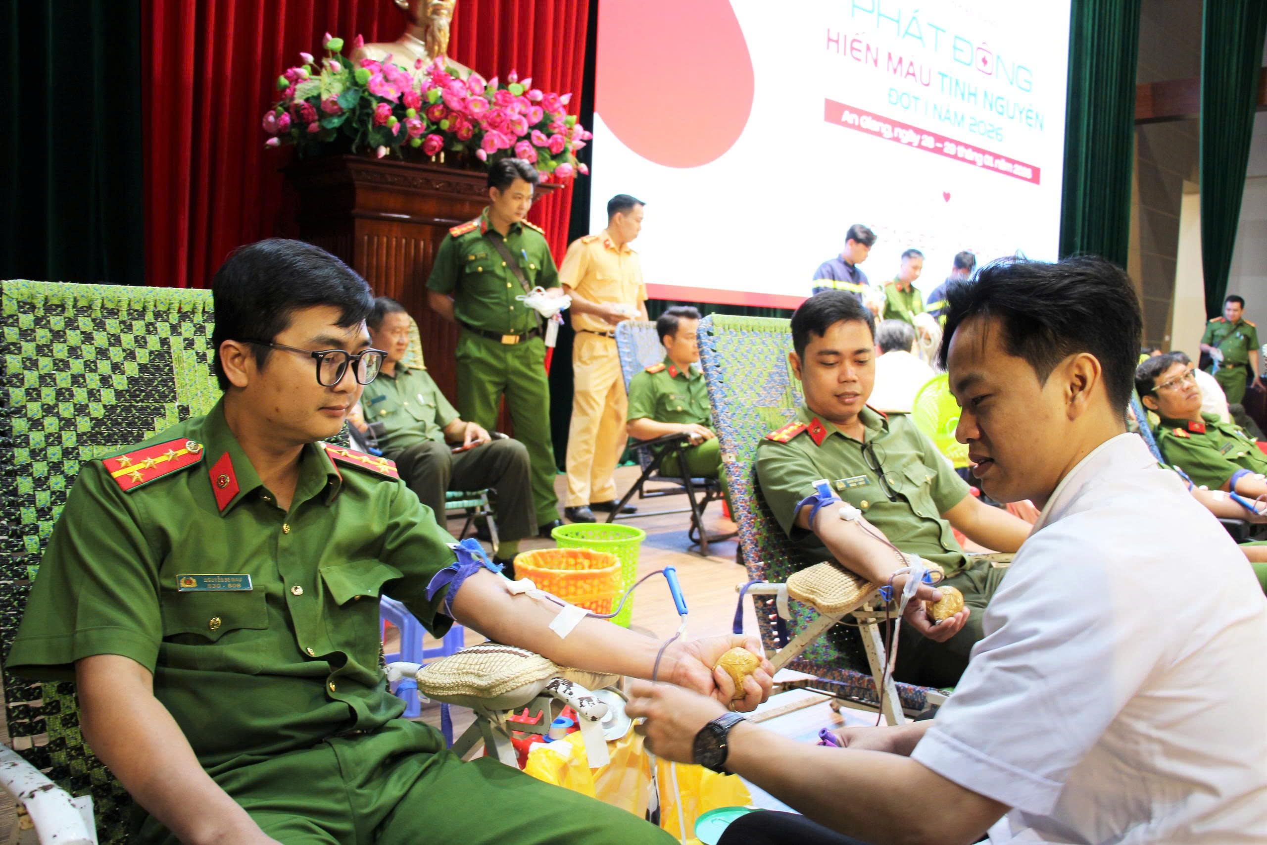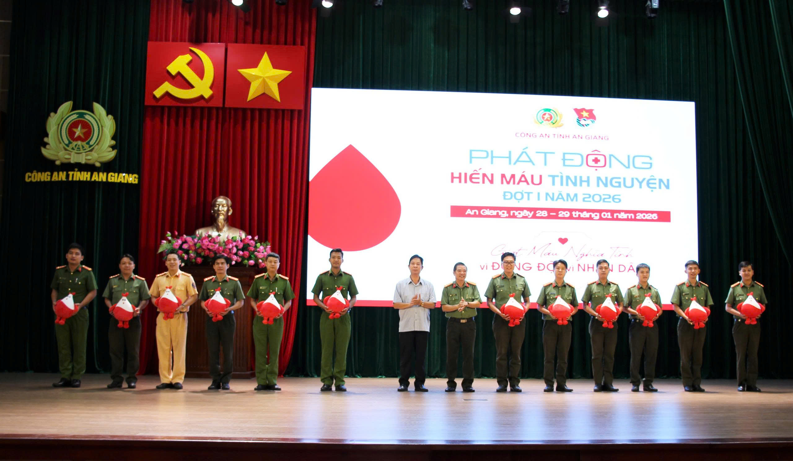 Trong không khí phấn khởi chào mừng thành công Đại hội đại biểu toàn quốc lần thứ XIV của Đảng và kỷ niệm 96 năm Ngày thành lập Đảng Cộng sản Việt Nam, ngày 29/01, Công an tỉnh An Giang tổ chức lễ phát động Chương trình hiến máu tình nguyện với chủ đề “Giọt máu nghĩa tình vì Đồng đội, vì Nhân dân”. Đại tá Lê Văn Quý, Tỉnh ủy viên, Phó Giám đốc Công tỉnh dự và phát biểu phát động. Tham dự có ông Trần Thiện Nhân, Trưởng khoa huyết học, miễn dịch Bệnh viện đa khoa Kiên Giang và đông đảo lãnh đạo, chỉ huy và cán bộ, chiến sĩ trong toàn lực lượng tham gia.