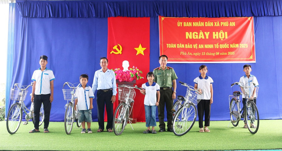 Ban Công đoàn Công an tỉnh An Giang tặng quà cho người dân có hoàn cảnh khó khăn, các em học sinh vượt khó học tốt và lực lượng bảo vệ an ninh, trật tự cơ sở tại xã Phú An