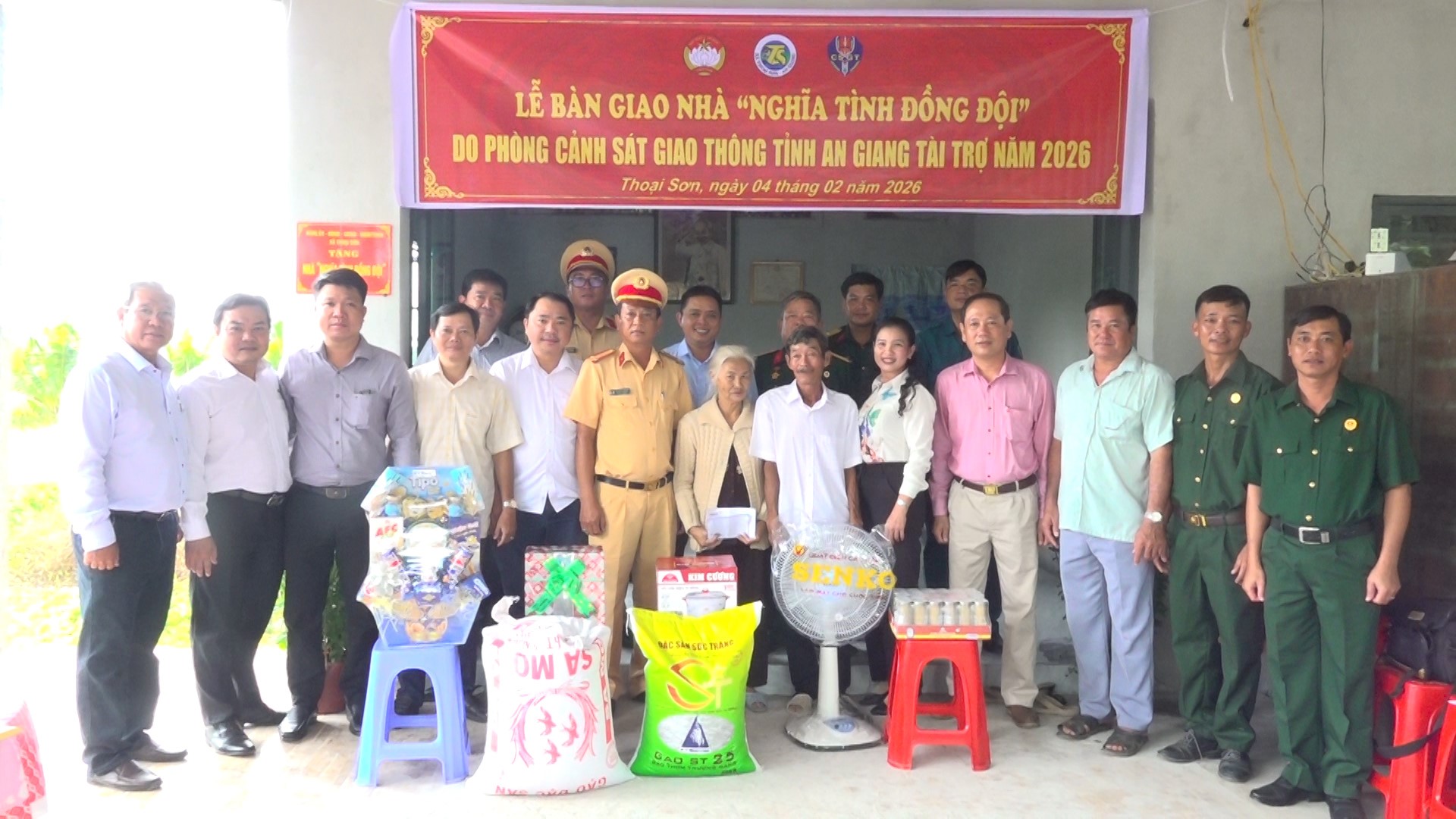 Hưởng ứng phong trào thi đua “Ba nhất: Kỷ luật nhất – Trung thành nhất - gần dân nhất” của Bộ Công an và Công an tỉnh An Giang phát động; đợt thi đua cao điểm 70 ngày đêm chào mừng kỷ niệm 80 năm Ngày truyền thống lực lượng Cảnh sát giao thông (21/02/1946 – 21/02/2026). Ngày 4/2/2026, Đội Cảnh sát giao thông số 3 và Đoàn Cơ sở Phòng Cảnh sát giao thông Công an tỉnh phối hợp với các tổ chức đoàn thể, chính quyền xã Thoại Sơn (tỉnh An Giang); cùng các nhà hảo tâm tổ chức Lễ bàn giao nhà “Nghĩa tình đồng đội” cho hộ ông Huỳnh Công Hiệp (ấp Kiên Hảo, xã Thoại Sơn, tỉnh An Giang) là hội viên Hội Cựu chiến binh, thuộc diện khó khăn về nhà ở.