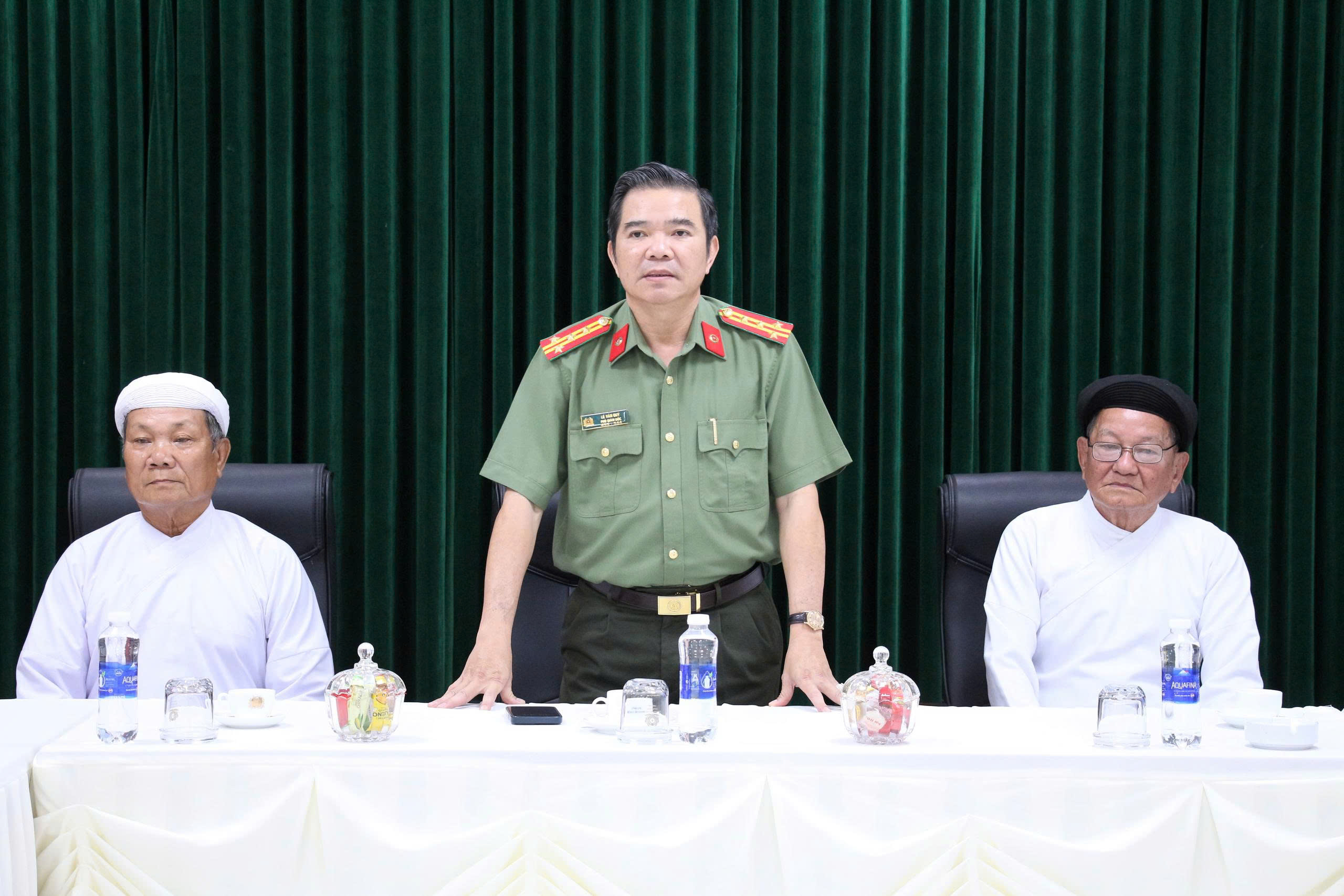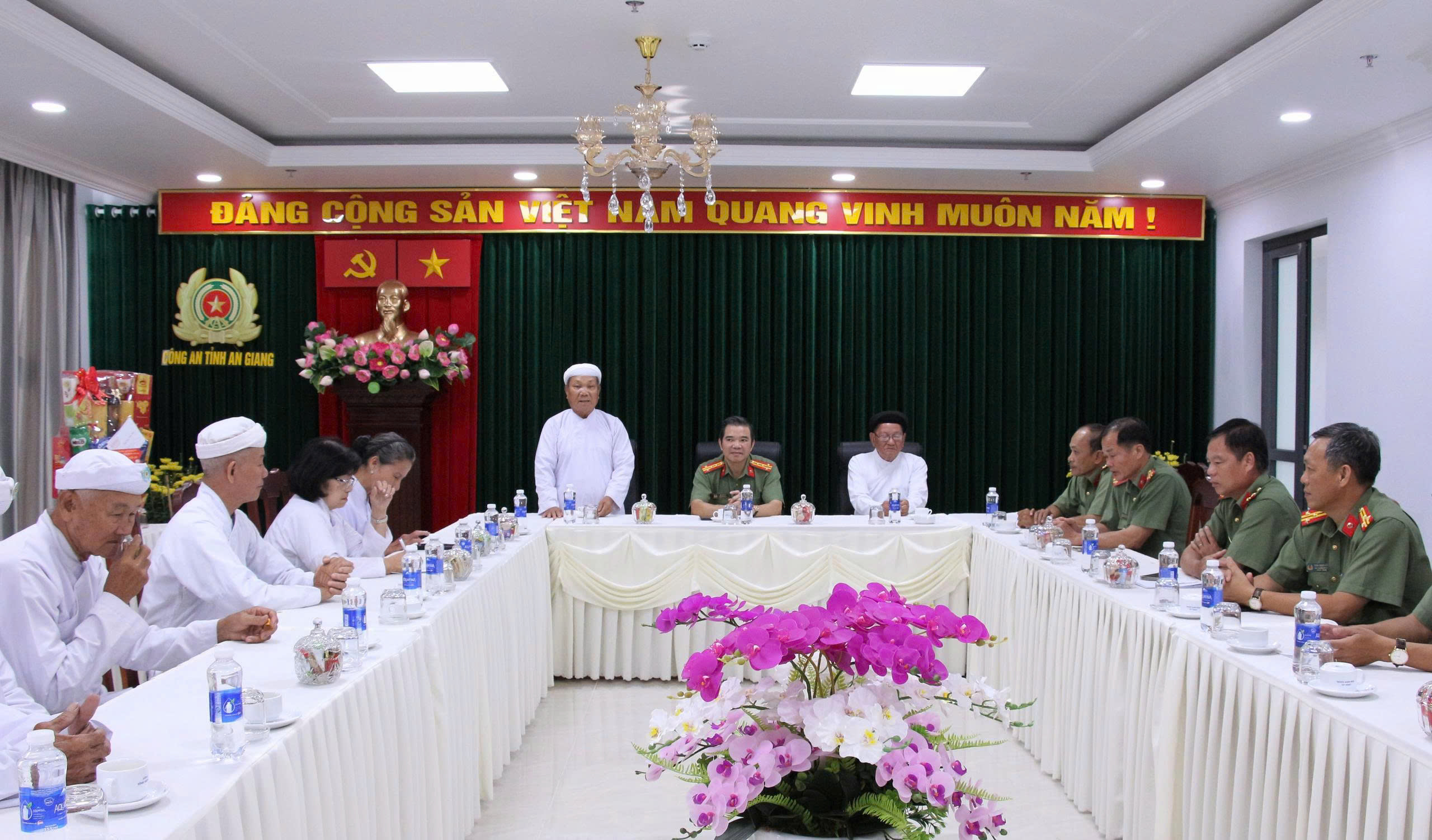 Ông Huệ Tín Trưởng Ban Thường trực Hội Thánh Cao Đài Bạch Y đại diện đoàn chúc Tết Công an tỉnh An Giang.