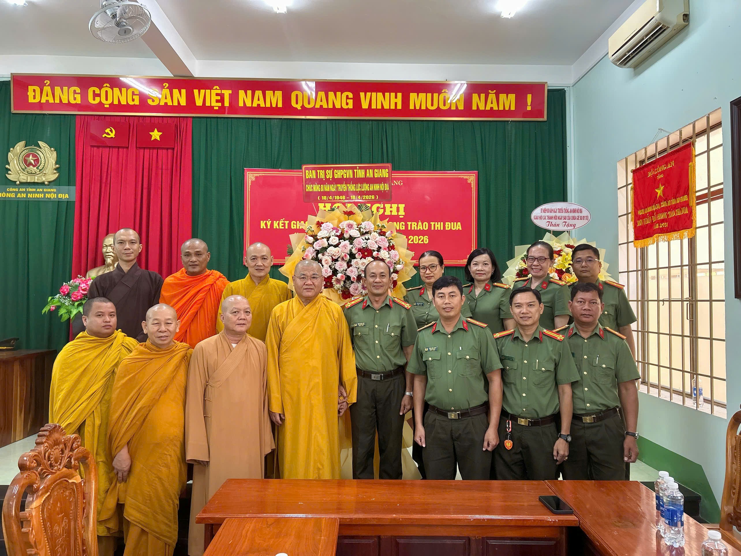 Đoàn Ban Trị sự GHPGVN tỉnh An Giang tặng lẵng hoa chúc mừng Phòng An ninh nội địa, Công an tỉnh An Giang nhân dịp kỷ niệm 80 năm Ngày truyền thống lực lượng An ninh nội địa