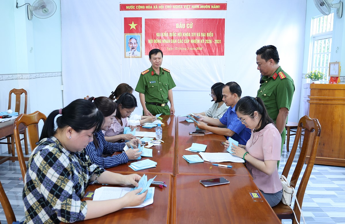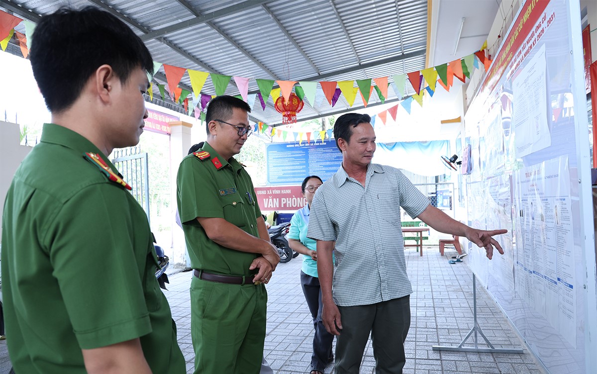 Thượng tá Trần Quang Trí, Trưởng Công an xã An Châu, tỉnh An Giang, cho biết: "Lực lượng Công an xã đã tham mưu cho Uỷ ban bầu cử xã rà soát, đối chiếu và in danh sách cử tri, niêm yết tại các điểm bầu cử. Đồng thời, Công an xã tăng cường công tác nắm tình hình, quản lý địa bàn chặt chẽ, ngăn chặn kịp thời âm mưu hoạt động chống phá của các thế lực thù địch, phản động, đặc biệt trên không gian mạng. Công an xã cũng phối hợp chặt chẽ với các lực lượng liên quan, tăng cường công tác nắm tình hình, trao đổi thông tin, đảm bảo an ninh và an toàn cho cuộc bầu cử. Song song đó, chúng tôi cũng tăng cường công tác đảm bảo trật tự an toàn giao thông, thực hiện cao điểm tấn công trấn áp tội phạm, quản lý đối tượng trên địa bàn."