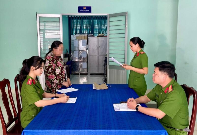 Cán bộ đang tống đạt quyết định tạm giữ hình sự đối tượng Nguyễn Hoài Hận Em.