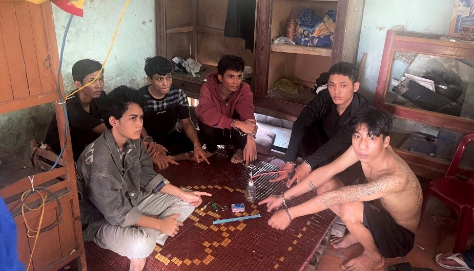 Trước đó, khoảng 13 giờ 00 phút ngày 16/12/2025, Phòng Cảnh sát điều tra tội phạm về ma túy Công an tỉnh phối hợp Công an xã Gò Quao tiến hành kiểm tra hành chính căn nhà tại ấp An Trường, xã Gò Quao phát hiện, bắt quả tang nhóm 06 đối tượng gồm: Lâm Nghiêm, sinh năm 2004, trú tại ấp An Trường; Trần Minh Hoàng, sinh năm 2004 trú tại ấp An Hiệp; Danh Vũ Cường, sinh năm 2000, trú tại ấp An Lợi (cả 03 cùng trú tại xã Gò Quao); Danh S.G, sinh năm 2009, trú tại ấp Hai Tỷ; Danh Phước, sinh năm 2007, trú tại ấp Chín Ghì (cả 02 cùng cùng trú tại xã Hòa Thuận, tỉnh An Giang) và Danh Ngọc Sang, sinh năm 2005, trú tại ấp Hòa Tạo, xã Định Hòa có hành vi tổ chức sử dụng trái phép chất ma túy. Kiểm tra tại hiện trường, lực lượng Công an phát hiện và thu giữ 01 bộ dụng cụ sử dụng ma túy và 21 đoạn ống hút được hàn kín hai đầu, bên trong chứa các hạt tinh thể nghi là chất ma túy.