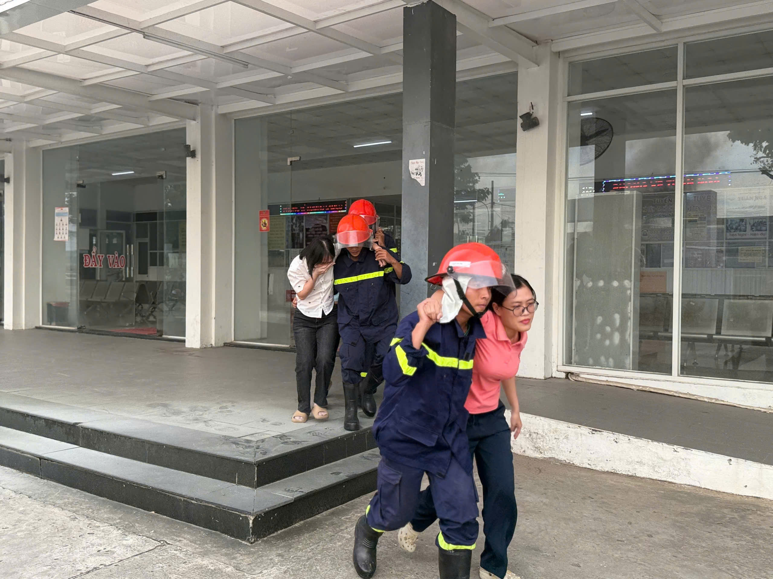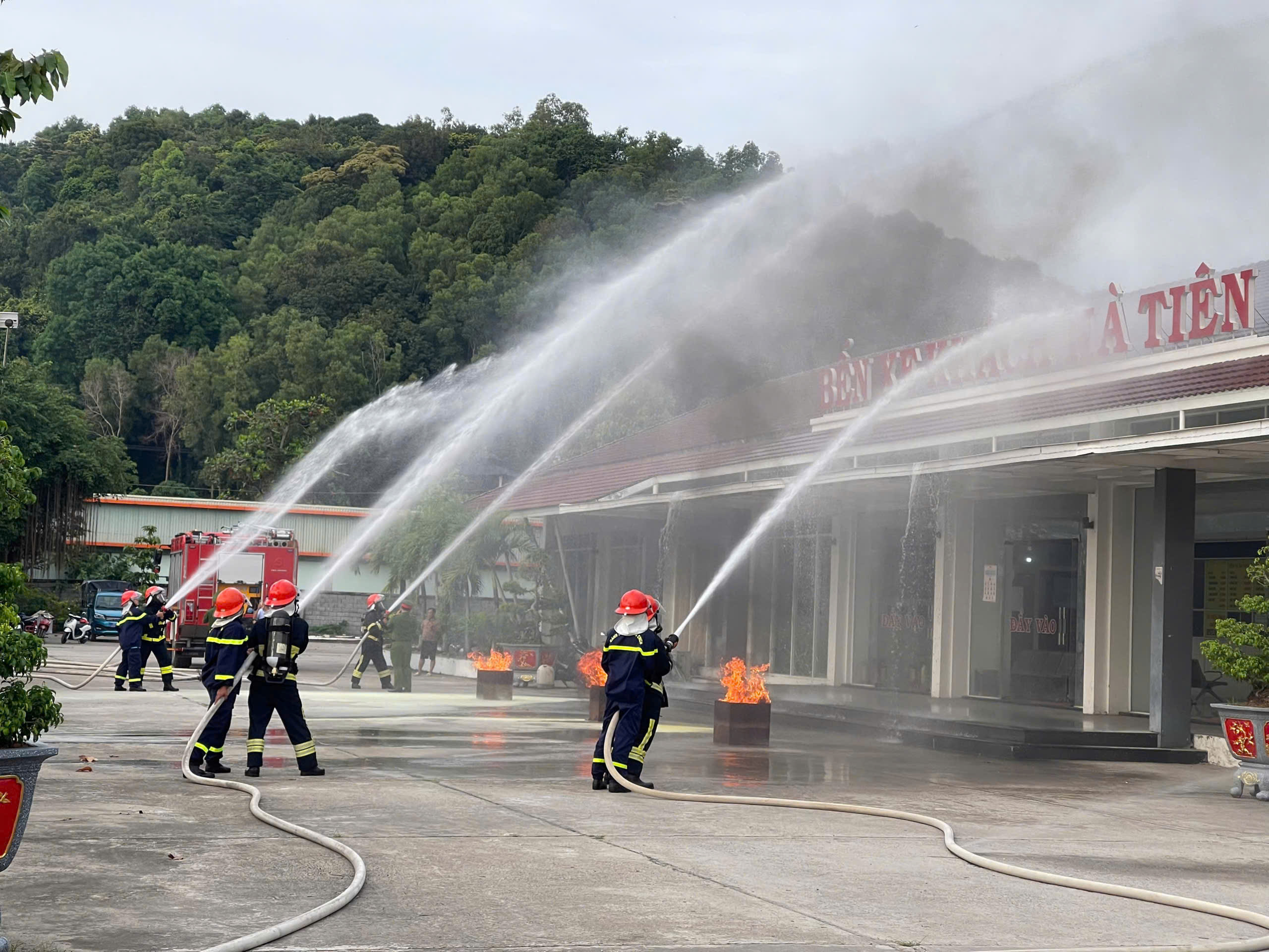 Bến xe khách Hà Tiên tổ chức tập phương án chữa cháy, cứu nạn, cứu hộ