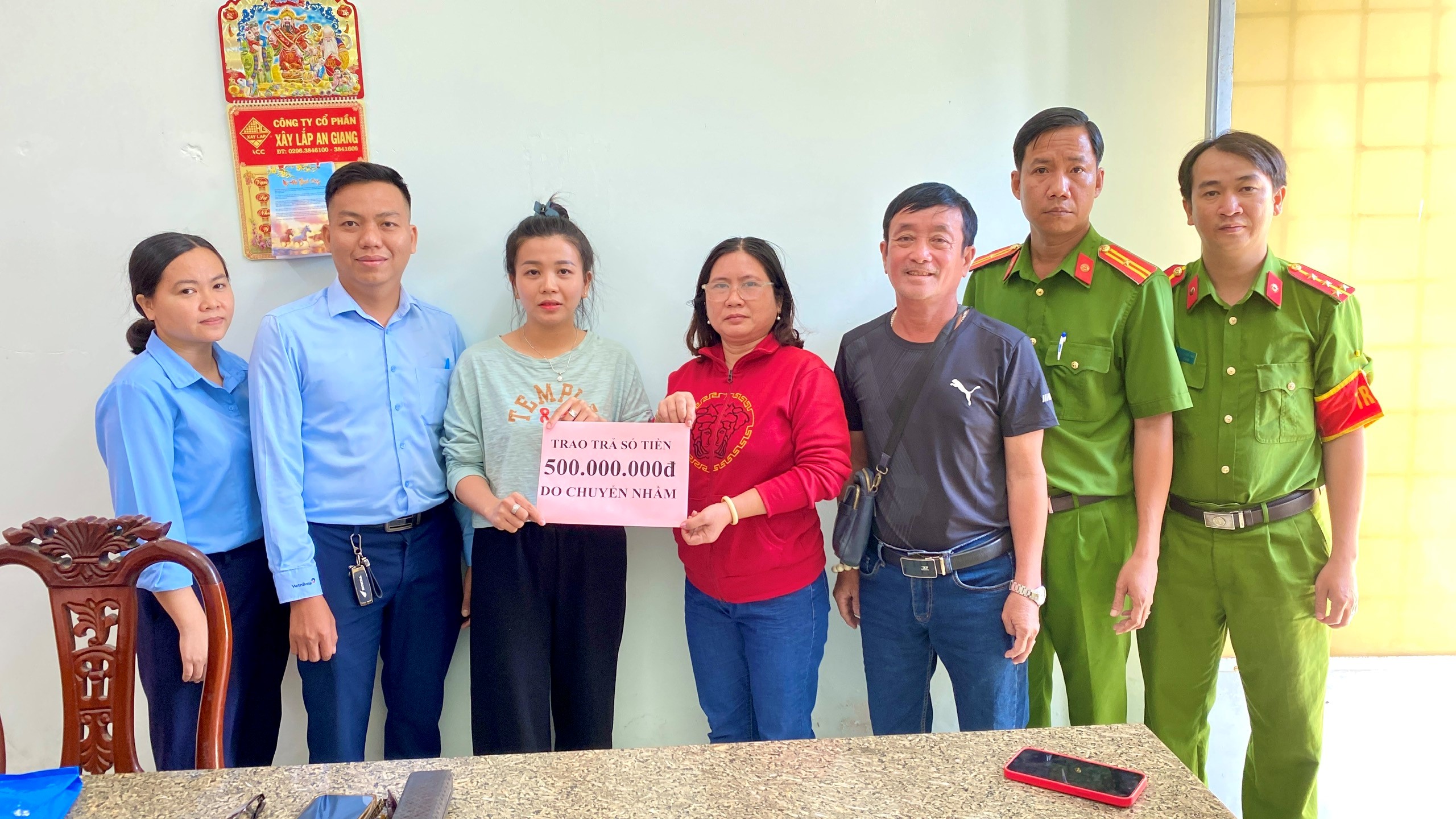 Sau khi tiếp nhận thông tin, bằng các biện pháp nghiệp vụ, Công an xã Tri Tôn nhanh chóng xác định số tiền trên là của bà Lê Thị Kim Ca (sinh năm 1976, cư trú ấp Bình Yên, xã Bình Mỹ). Qua trao đổi với bà Ca được biết, ngày 6/1/2026, bà Ca cùng chồng đến thực hiện giao dịch tại ngân hàng VietinBank Chi nhánh Châu Thành, nhưng do nhầm lẫn thông tin tài khoản nên toàn bộ số tiền đã chuyển nhầm sang tài khoản của chị Như. Sau đó, Công an xã Tri Tôn đã mời bà Ca và đại diện ngân hàng đến trụ sở để chị Như thực hiện các thủ tục trao trả lại số tiền 500 triệu đồng cho bà Ca theo đúng quy định. Hành động của chị Như thể hiện phẩm chất đạo đức trong sáng, tinh thần trung thực, góp phần lan tỏa những giá trị tốt đẹp trong cộng đồng.