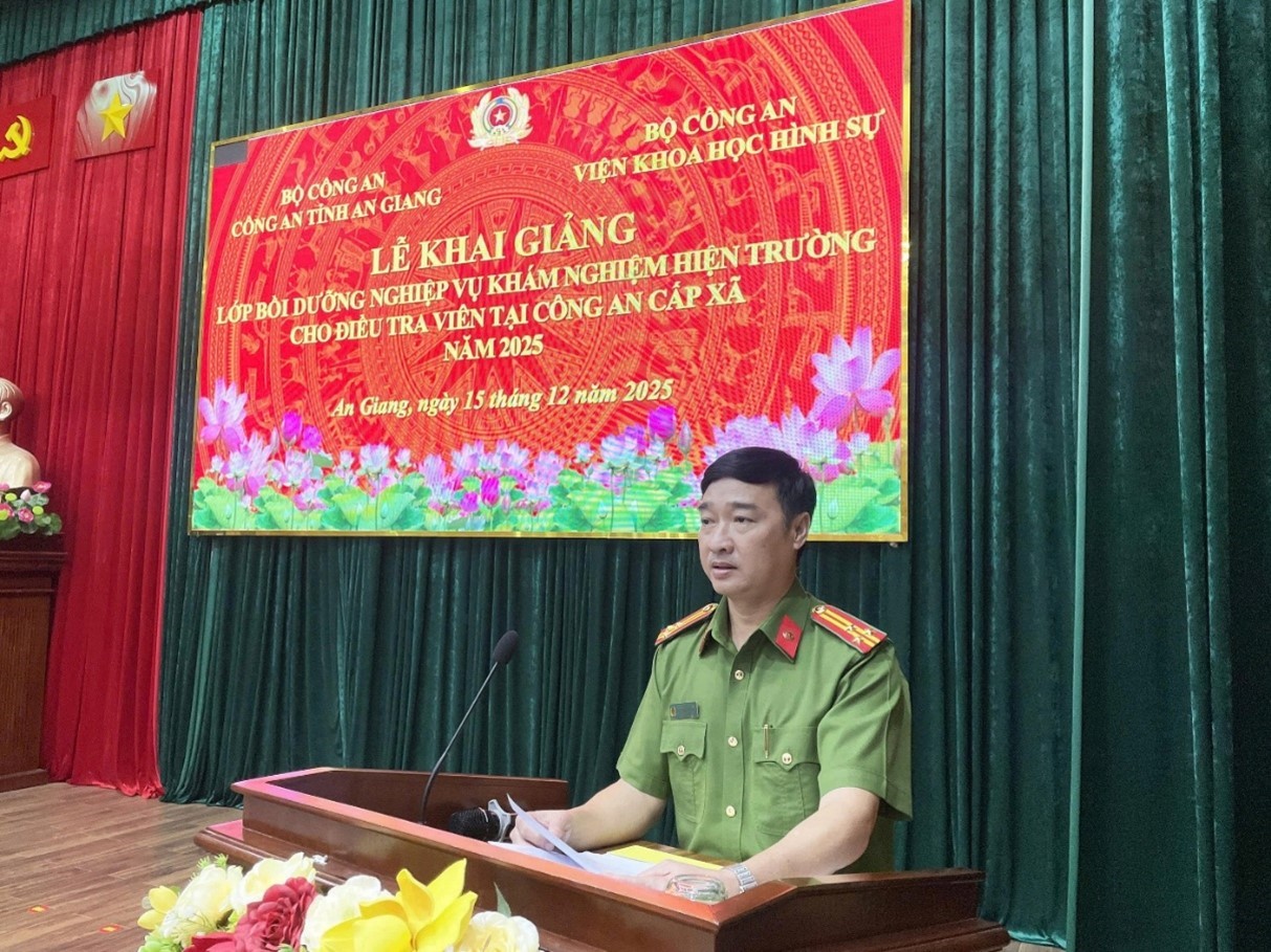 Từ ngày 15 đến 19/12/2025, Viện Khoa học hình sự – Bộ Công an phối hợp Phòng Kỹ thuật hình sự, Công an tỉnh An Giang tổ chức lớp Bồi dưỡng nghiệp vụ khám nghiệm hiện trường cho điều tra viên bố trí tại Công an cấp xã năm 2025.