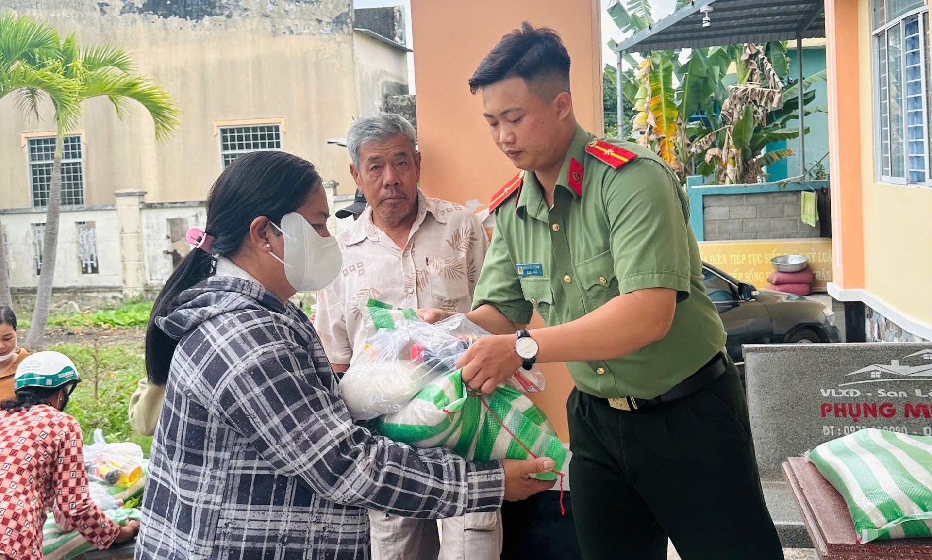 Chi đoàn Công an xã Hòa Điền đồng hành cùng bà con dân tộc Khmer có hoàn cảnh khó khăn