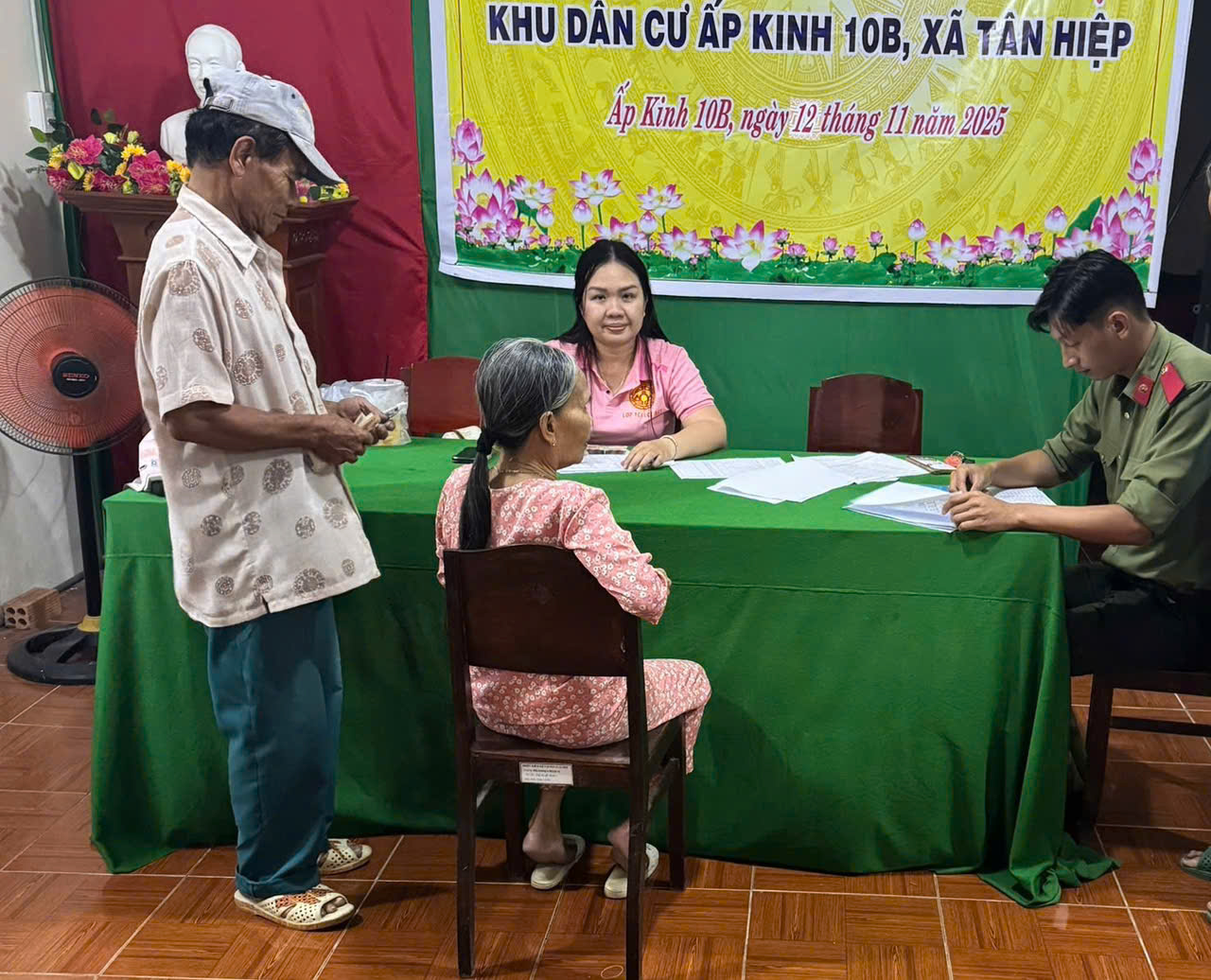 Sáng 31/12/2025, người có công và các đối tượng bảo trợ xã hội trên địa bàn xã.trên địa bàn xã Tân Hiệp đã được nhận quà của Đảng, Nhà nước nhân dịp chào mừng Đại hội đại biểu toàn quốc lần thứ XIV của Đảng và Tết Nguyên đán Bính Ngọ năm 2026. Mỗi phần quà trị giá 400.000 đồng tiền mặt. Để đảm bảo công tác chi trả diễn ra nhanh chóng, chính xác đúng quy định, Chi đoàn Công an xã đã tổ chức tốt công tác đảm bảo ANTT và cử 10 đồng chí tham gia hỗ trợ 08 Tổ công tác của UBND xã tổ chức chi trả tiền quà tặng cho người dân.