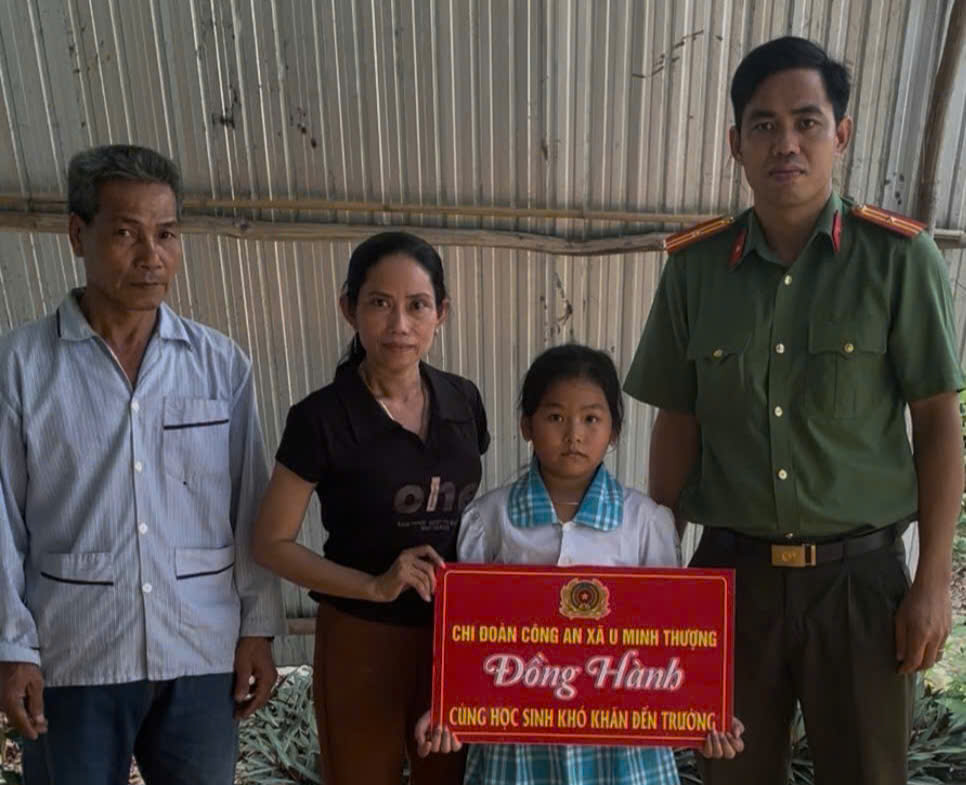 Hoạt động “Đồng hành cùng học sinh khó khăn đến trường” của Chi đoàn Công an xã U Minh Thượng với việc lựa chọn 01 học sinh tiểu học đang học lớp 2 có hoàn cảnh khó khăn để hỗ trợ cho em học tập đến khi hoàn thành chương trình tiểu học (hết lớp 5). Nguồn kinh phí thực hiện hỗ trợ do đoàn viên của Chi đoàn tự nguyện trích đóng góp từ tiền lương hàng tháng. Được biết em Phạm Ý Lan có hoàn cảnh gia đình đặc biệt khó khăn, cha mất, mẹ bỏ đi, hiện em sống cùng ông bà nội đã già yếu.