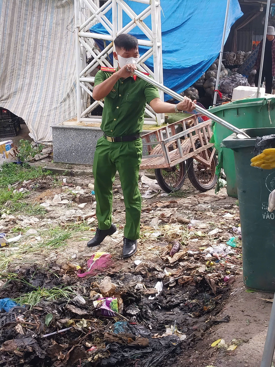 Chi đoàn Công an xã Vĩnh Phong phối hợp tham gia dọn vệ sinh môi trường