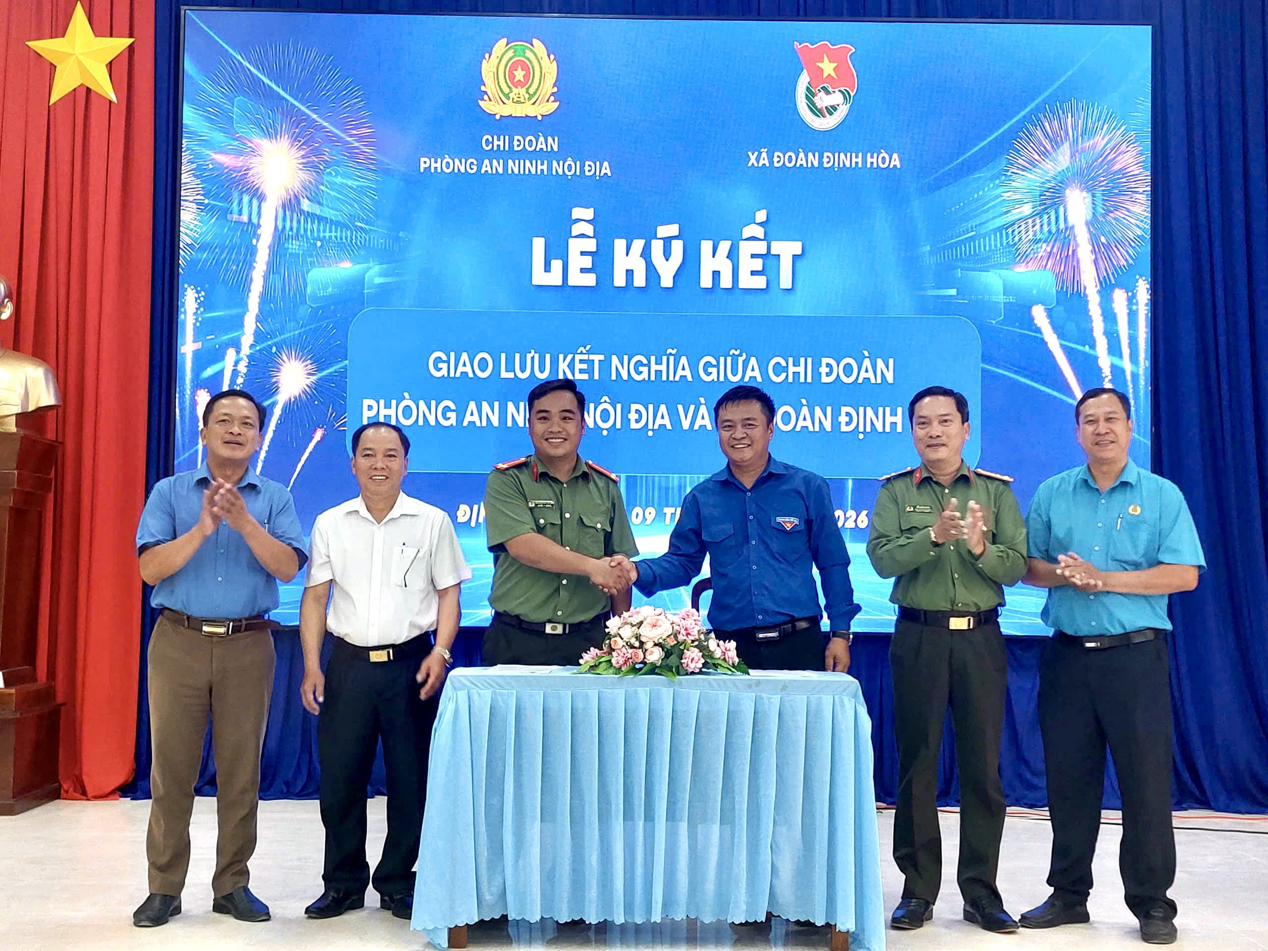 Vừa qua, tại xã Định Hoà, Chi đoàn Phòng An ninh nội địa cùng với Xã đoàn Định Hoà tổ chức kết nghĩa trong thực hiện công tác đoàn và phong trào thanh niên, giai đoạn 2026 - 2030 và trao 100 suất quà cho người dân có hoàn cảnh khó khăn trên địa bàn xã, hướng tới kỷ niệm 95 năm Ngày thành lập Đoàn TNCS Hồ Chí Minh (26/3/1931 - 26/3/2026), 80 năm Ngày thành lập lực lượng An ninh nội địa (18/4/1946 - 18/4/2026) và hưởng ứng Chương trình “Xuân tình nguyện” năm 2026.