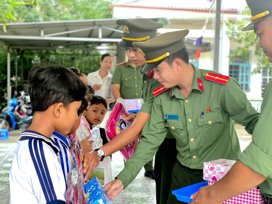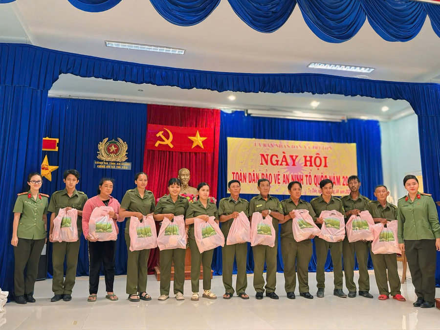 Đoàn đến thăm và trao tặng quà cho Công an xã Tri Tôn và lực lượng ANTT ở cơ sở