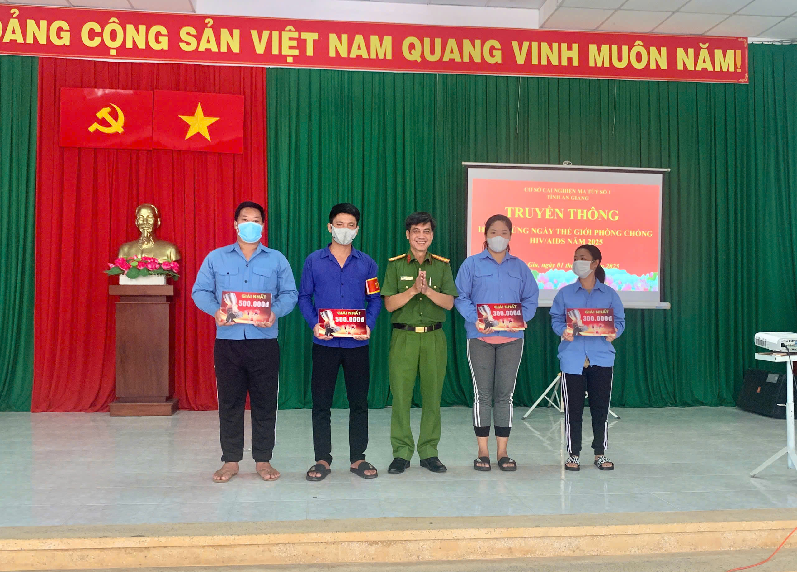 Vừa qua, Cơ sở cai nghiện ma túy số 1 phối hợp Phòng Cảnh sát điều tra tội phạm về ma túy Công an tỉnh An Giang tổ chức chương trình truyền thông hưởng ứng Ngày Thế giới phòng, chống HIV/AIDS. Tại chương trình, các học viên được phổ biến Luật Phòng, chống ma túy; kiến thức phòng ngừa HIV/AIDS và các biện pháp bảo vệ sức khỏe bản thân. Qua đó giúp học viên nâng cao nhận thức, ý thức trách nhiệm trong việc phòng tránh lây nhiễm, bảo vệ bản thân và gia đình trước căn bệnh nguy hiểm.