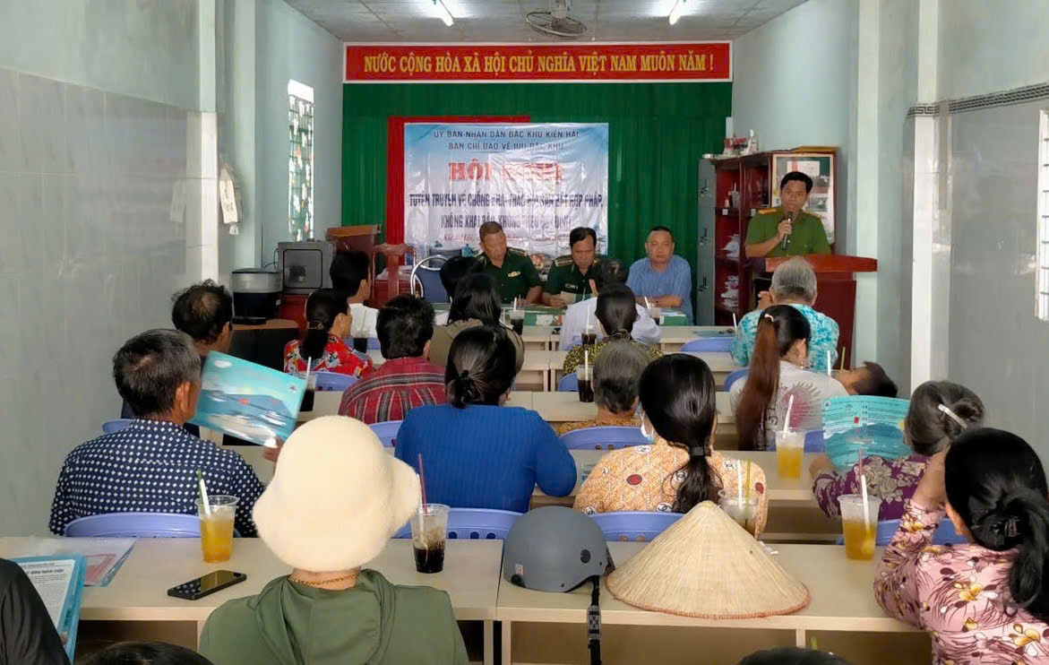 Công an đặc khu Kiên Hải phối hợp với các Đồn Biên phòng đóng quân trên địa bàn, Ban nhân dân các ấp tổ chức tuyên truyền sâu rộng đến bà con Nhân dân. Nội dung tuyên truyền tập trung vào các quy định về chống khai thác hải sản bất hợp pháp, không khai báo và không theo quy định (IUU); các quy định mới của pháp luật về xử phạt vi phạm hành chính trong lĩnh vực an ninh, trật tự, an toàn xã hội; phòng, chống tệ nạn xã hội; phòng, chống bạo lực gia đình theo Nghị định số 28/2025/NĐ-CP của Chính phủ; công tác quản lý, sử dụng vũ khí, vật liệu nổ, công cụ hỗ trợ; quản lý, sử dụng dao có tính sát thương cao và các quy định về quản lý, sử dụng pháo.