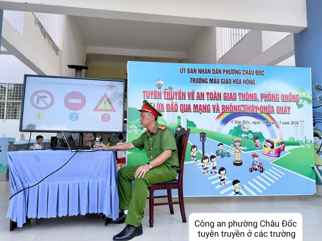 ‎Nhằm nâng cao nhận thức và kỹ năng đảm bảo an toàn cho trẻ em, từ ngày 25/3 đến ngày 31/3, Công an phường Châu Đốc đã phối hợp với 04 trường mầm non, mẫu giáo trên địa bàn tổ chức các buổi tuyên truyền về an toàn giao thông, phòng cháy chữa cháy trong trường học và phòng chống lừa đảo qua mạng. Chương trình thu hút sự tham gia của 1.240 học sinh, 117 giáo viên và 740 phụ huynh.
