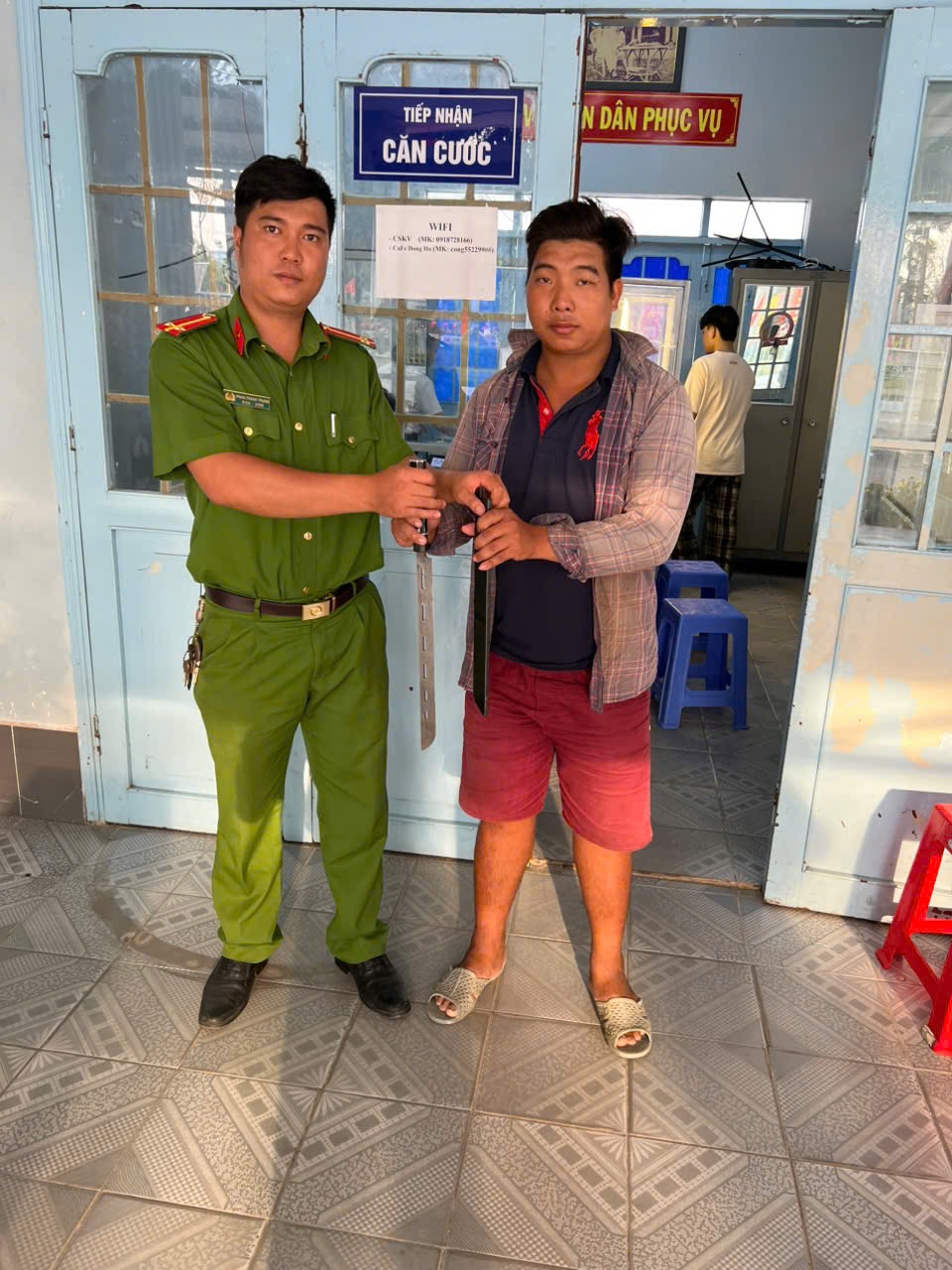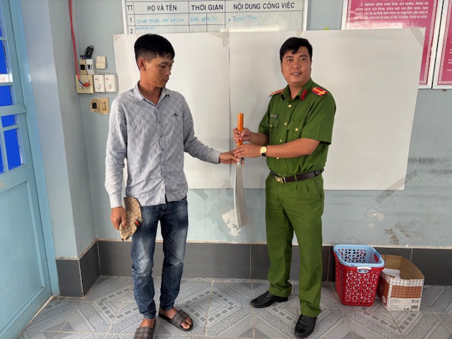 Công an phường Hà Tiên tiếp nhận kiếm tự chế và Đao tự chế từ người dân tự nguyện đến giao nộp