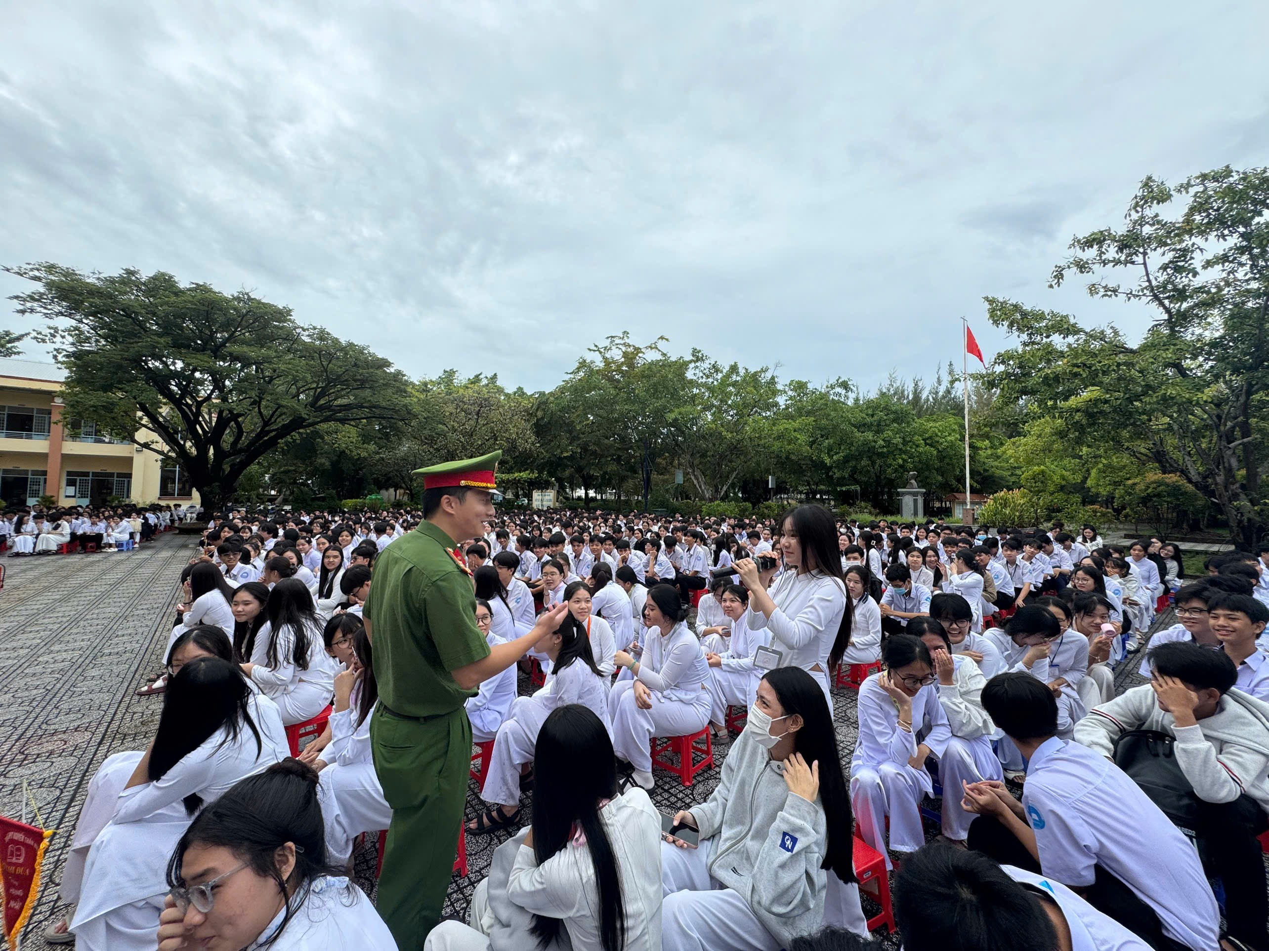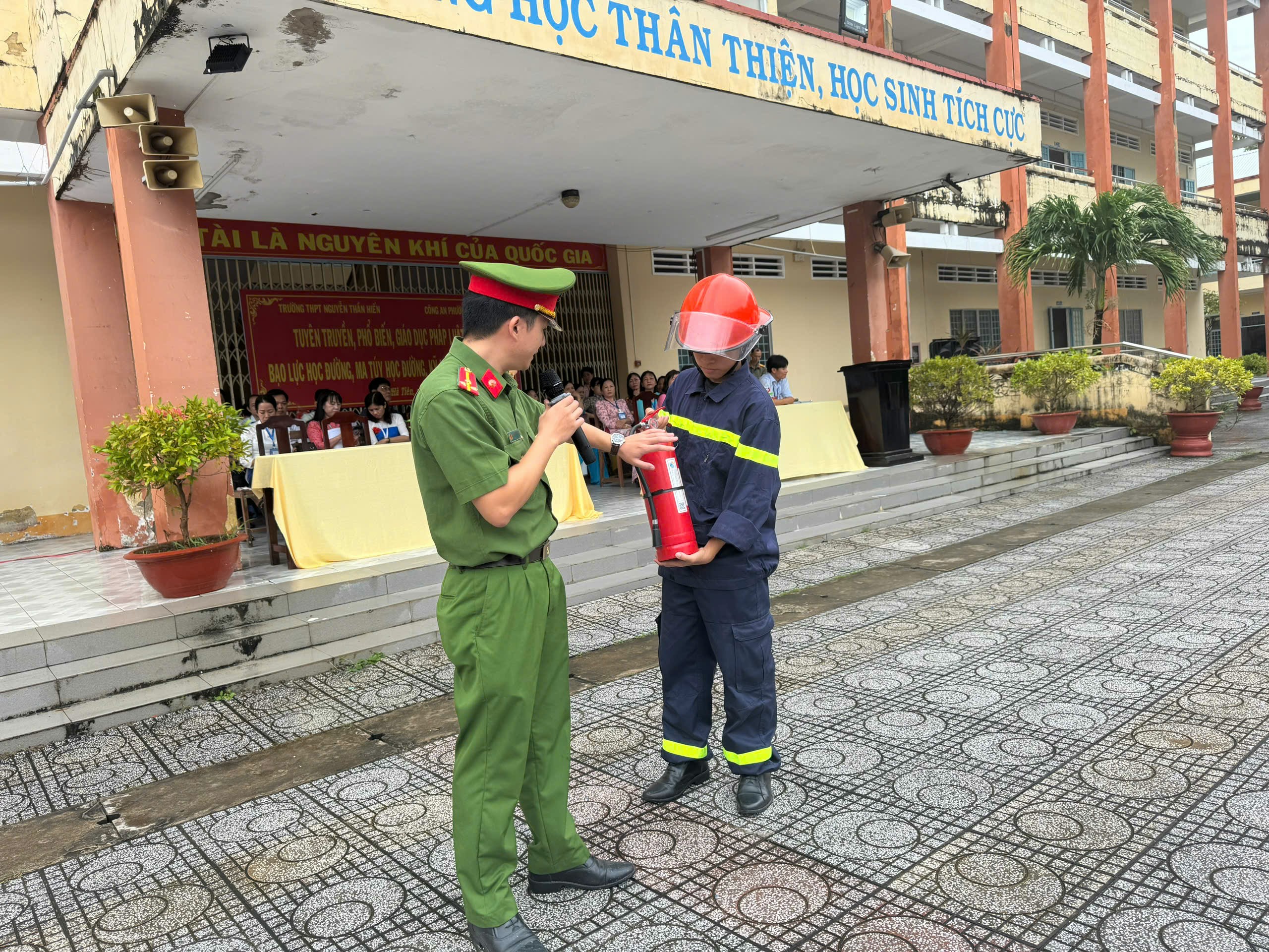 Công an phường Hà Tiên phối hợp trường THPT Nguyễn Thần Hiến tổ chức “Tuyên truyền, phổ biến, giáo dục pháp luật về an toàn, giao thông; bạo lực học đường; ma túy học đường; kỹ năng PCCC và CNCH năm 2025” đối với cán bộ, công chức, viên chức nhà trường và các em học sinh, đồng thời, cho viết cam kết không vi phạm trật tự, an toàn giao thông đối với 1.275 em học sinh và 59 thầy cô.