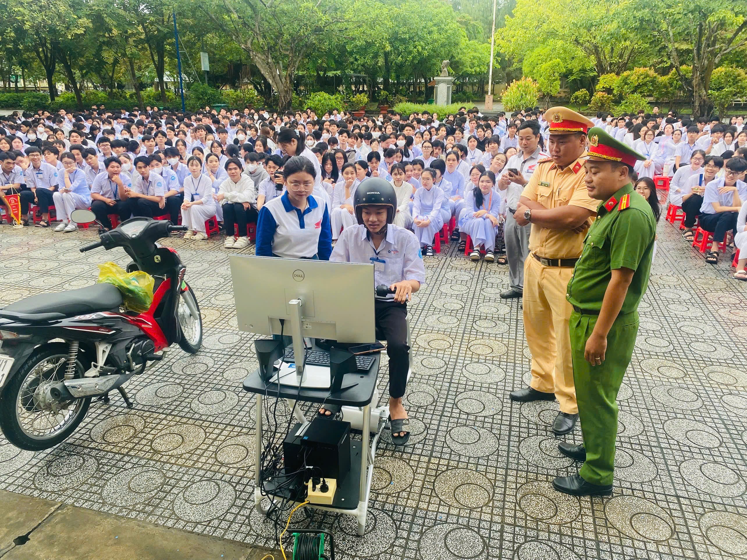 Tại buổi tuyên truyền thầy cô và các em đã được các nhân viên cửa hàng Honda HEAD hướng dẫn các kỹ năng lái xe an toàn và thực hành lái xe trên mô hình ERT của hệ thống HONDA. Qua phần thực hành các em đều rất vui và nắm được các kỹ năng cơ bản khi điều khiển phương tiện.