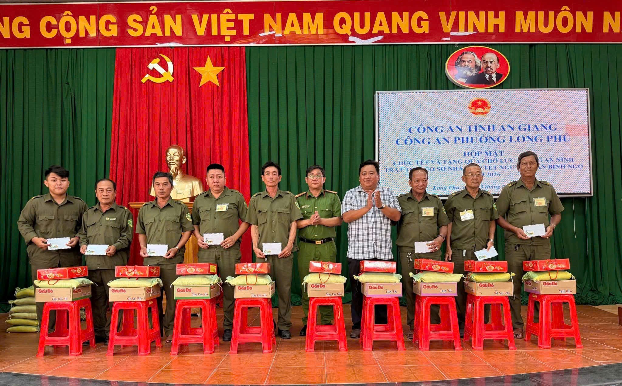 Nhân dịp tết Nguyên đán Bính Ngọ 2026, vừa qua, Công an phường Long Phú đã tham mưu cho TT. Đảng ủy – UBND phường tổ chức họp mặt, thăm hỏi và tặng quà cho Lực lượng bảo vệ an ninh trật tự (ANTT) cơ sở trên địa bàn phường.