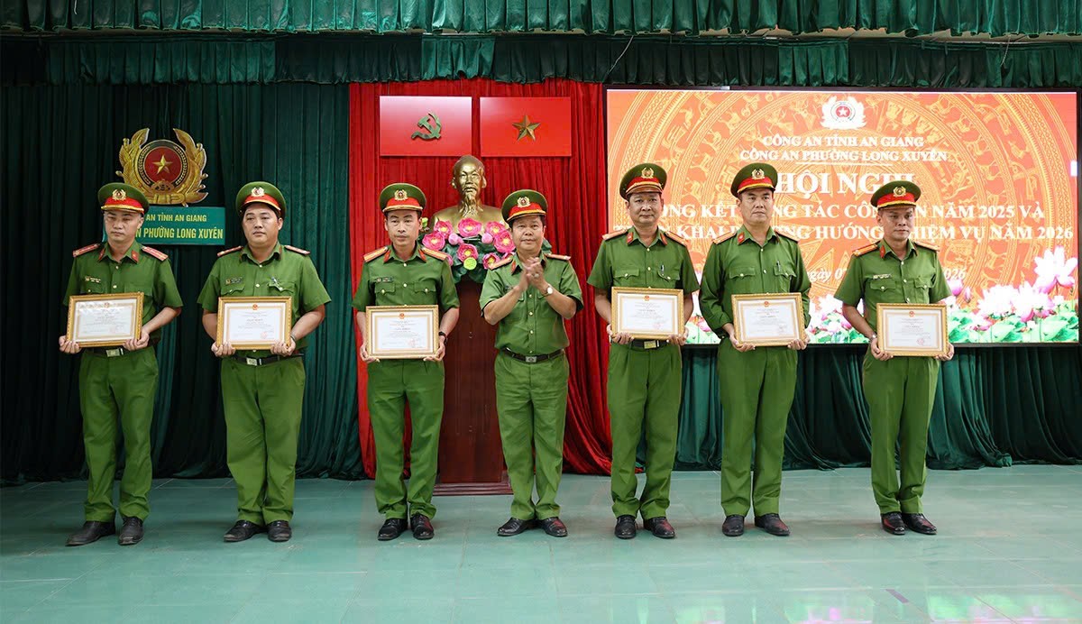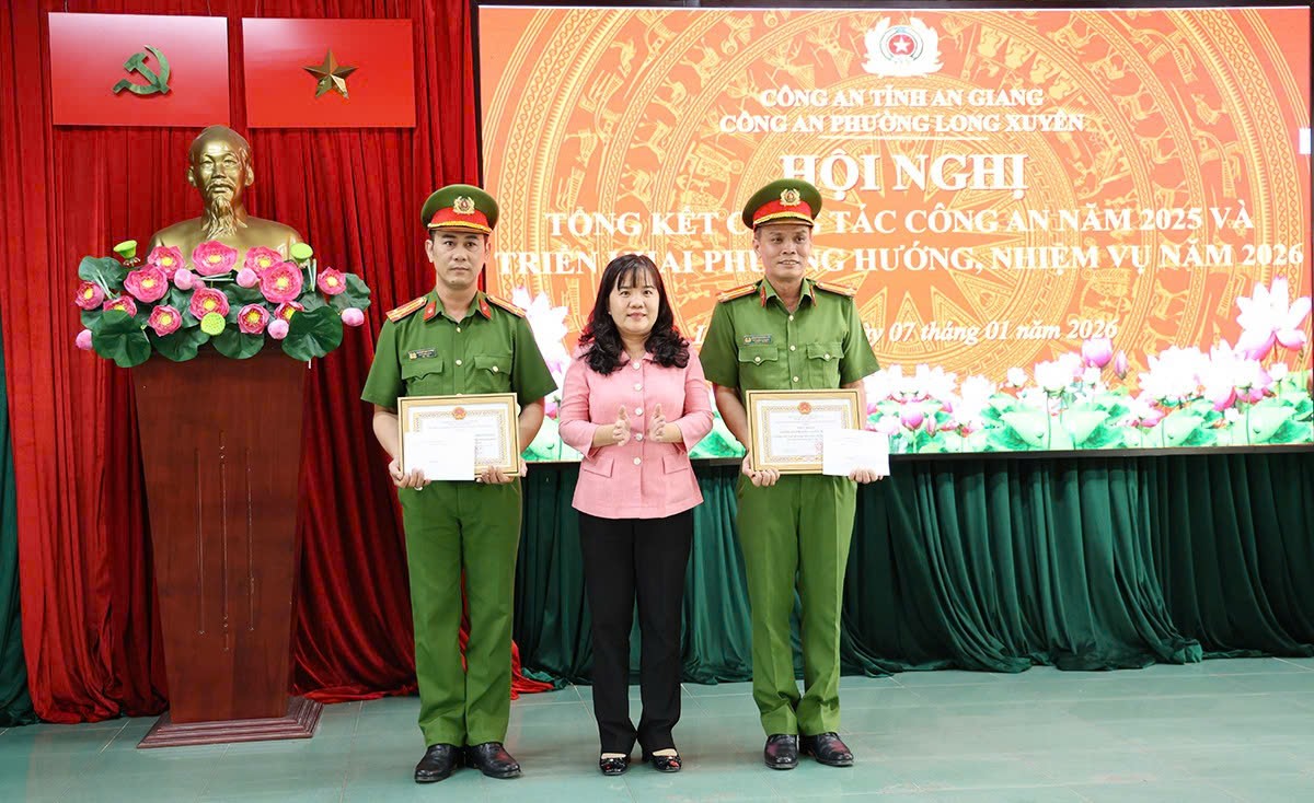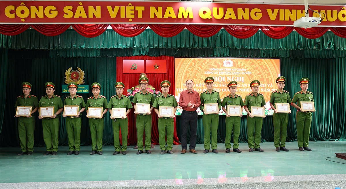 Với những thành tích đạt được trong năm qua, Công an phường Long Xuyên được Giám đốc Công an tỉnh tặng danh hiệu “Đơn vị quyết thắng” và 30 cá nhân thuộc Công an phường được Giám đốc Công an tỉnh tặng danh hiệu "Chiến sĩ thi đua cơ sở" vì đã có thành tích xuất sắc trong phong trào thi đua "Vì an ninh Tổ quốc" năm 2025. Dịp này, Giám đốc Công an tỉnh và Chủ tịch UBND phường Long Xuyên tặng 05 Giấy khen cho tập thể Công an phường, 19 cá nhân thuộc Công an phường. Chủ tịch UBND phường Long Xuyên khen thưởng đột xuất cho Phòng Cảnh sát hình sự Công an tỉnh và Công an phường vì có thành tích xuất sắc trong khám phá nhanh vụ trộm tiền, vàng trị giá trên 1,5 tỷ đồng.