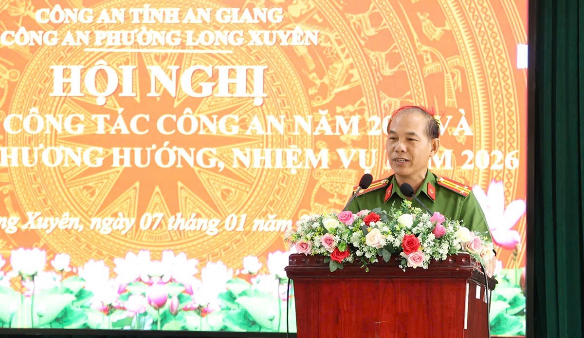 Phát biểu kết luận Hội nghị, Thượng tá Võ Văn Chỉnh, Trưởng Công an phường Long Xuyên xin tiếp thu các ý kiến chỉ đạo của Chủ tịch UBND phường, sẽ đưa vào chương trình, kế hoạch công tác năm 2026 để triển khai thực hiện. Đồng thời, đồng chí Trưởng Công an phường cũng phát động phong trào thi đua “Vì an ninh Tổ quốc” năm 2026.