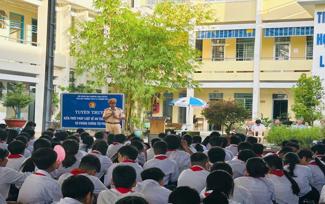 Vừa qua, Công an phường Long Xuyên phối hợp với Phòng Cảnh sát giao thông Công an tỉnh An Giang và Trường THCS Lý Thường Kiệt tổ chức buổi tuyên truyền pháp luật về an toàn giao thông và phòng, chống tội phạm cho các thầy cô giáo cùng hơn 1.000 học sinh nhà trường.