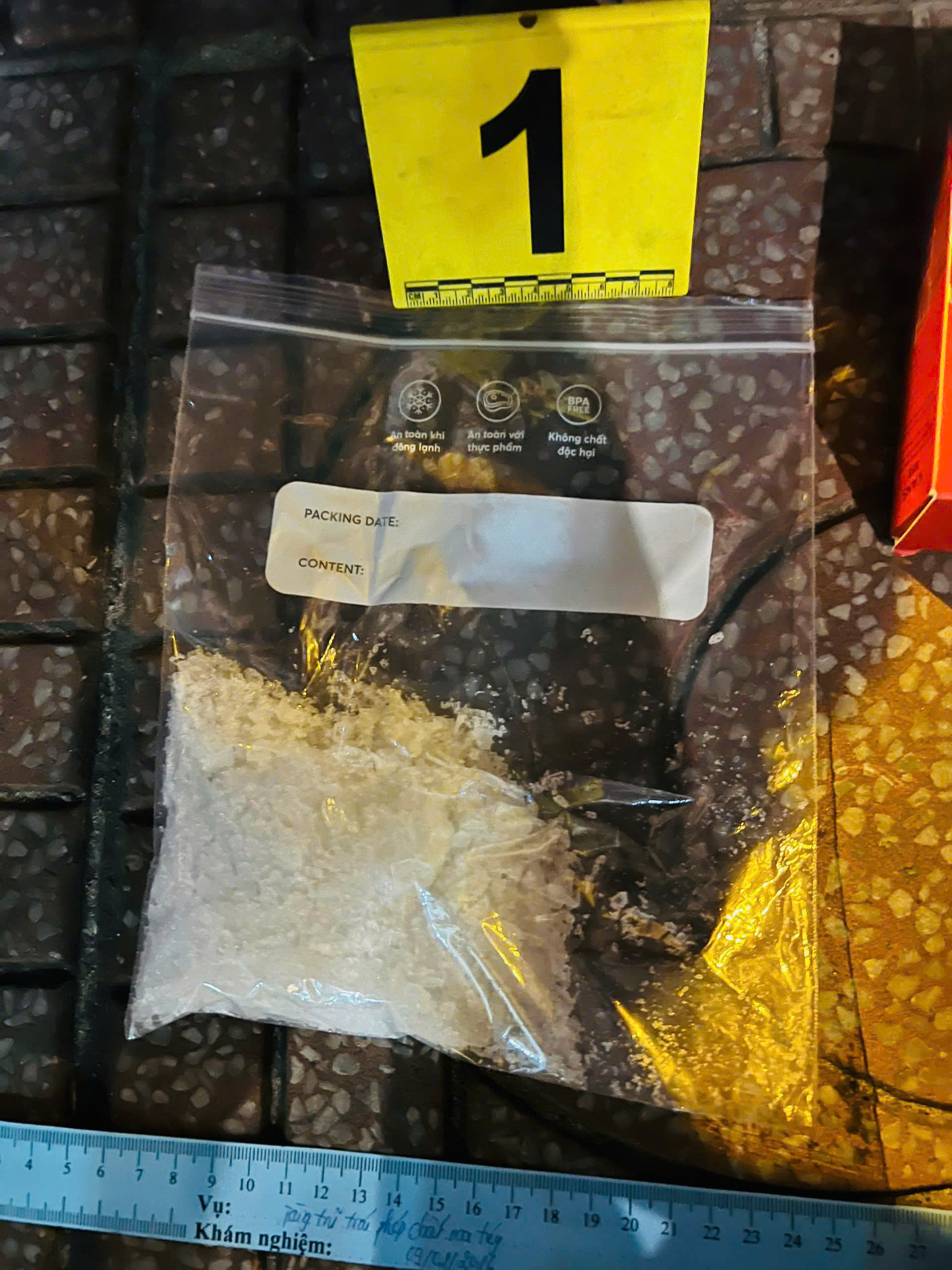 Tang vật thu giữ gồm: 52 gói dung dịch màu vàng, có sọc đen, in hình con bò tót và dòng chữ “LAMBORGHINI”; 01 hộp kem chống nắng ghi số 50 và dòng chữ “KANS”, bên trong có 01 bịch nilon trong suốt chứa chất rắn màu trắng nghi là ma túy.