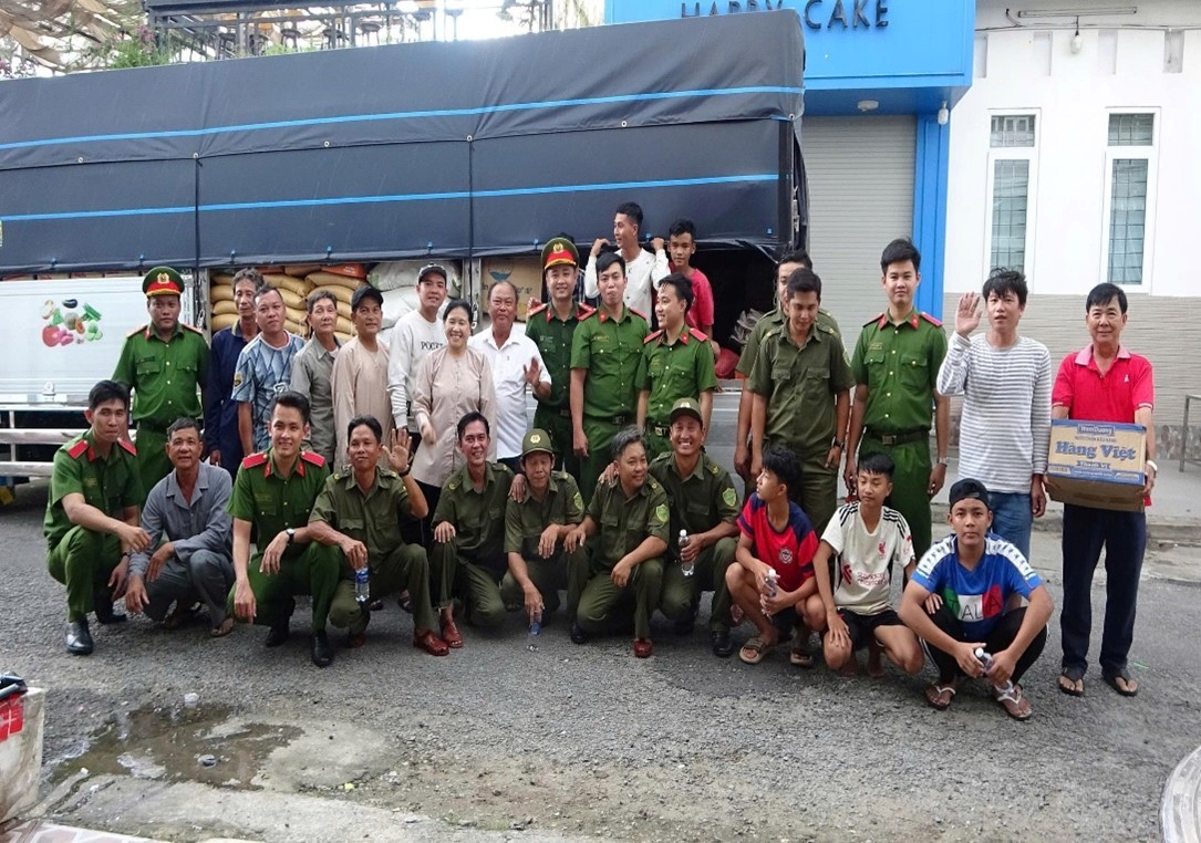Công an phường Rạch Giá phối hợp Ban Trị sự Phật giáo Hòa Hảo hỗ trợ đồng bào miền Trung khắc phục hậu quả thiên tai