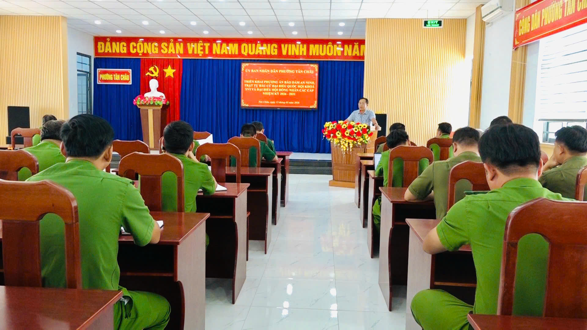Công an phường Tân Châu triển khai phương án bố trí, phân công lực lượng bảo đảm an ninh, trật tự bầu cử