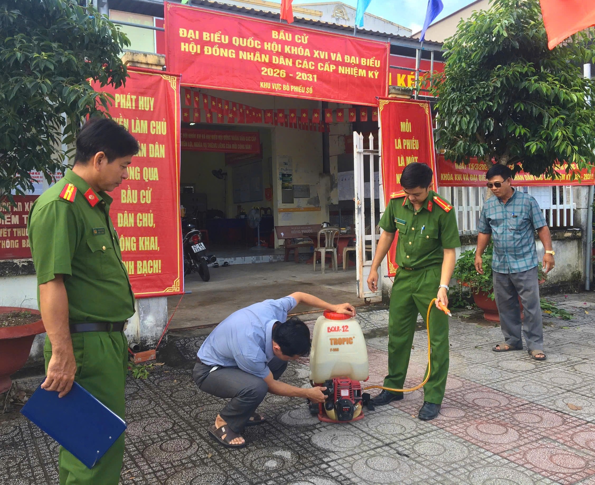 Công an phường Thới Sơn đảm bảo an toàn phòng cháy, chữa cháy tại các điểm bầu cử