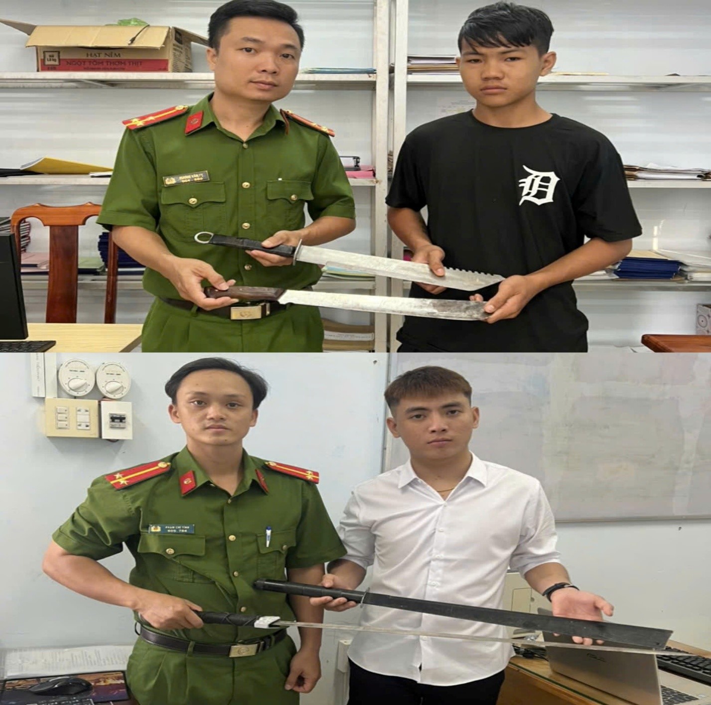 Điển hình, trong các ngày 27 và 28/01/2026, thông qua công tác tuyên truyền, Công an phường Thới Sơn đã tiếp nhận 04 vũ khí thô sơ gồm: 02 mã tấu, 01 kiếm và 01 đao do anh Nguyễn Hoài Nam (sinh năm 2004, trú tại khóm Tây Hưng, phường Thới Sơn, tỉnh An Giang) và anh Đặng Minh Trí (sinh năm 2011, trú tại khóm Đông Thuận, phường Thới Sơn, tỉnh An Giang) tự giác đến trụ sở Công an phường giao nộp. Lực lượng Công an đã tiến hành tiếp nhận, lập biên bản thu hồi, quản lý theo đúng quy định của pháp luật; đồng thời tuyên truyền, nhắc nhở các công dân nghiêm túc chấp hành các quy định của pháp luật về quản lý, sử dụng vũ khí, vật liệu nổ, công cụ hỗ trợ và pháo.