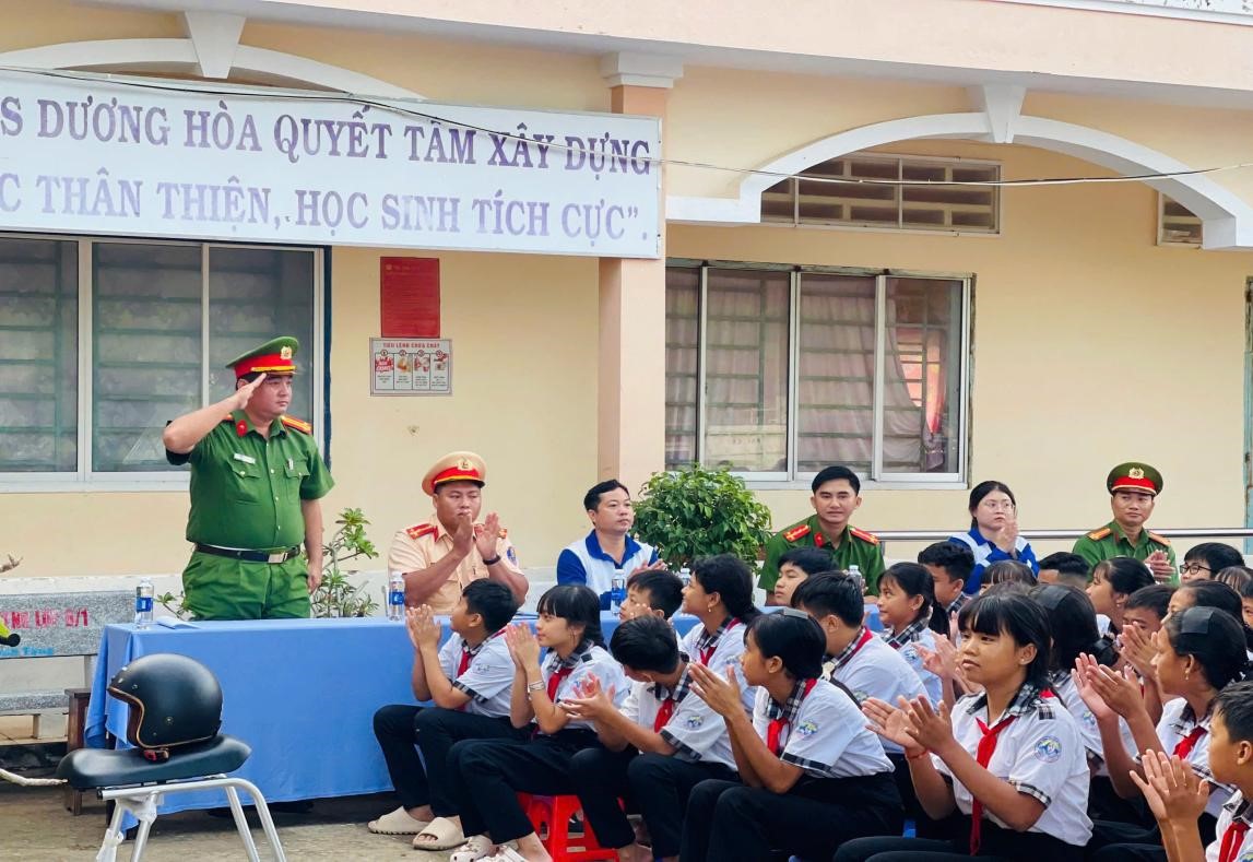 Tham gia buổi tuyên truyền có đồng chí Trung tá Lê Hoài Bắc - Phó Bí thư Đảng ủy, Phó Trưởng Công an phường cùng đại diện các ban, ngành đoàn thể phường, đại diện lãnh đạo khu phố, đại diện Phòng PC08 Công an tỉnh cùng 120 học sinh, giáo viên Trường THCS Dương Hòa. Tại đây, Công an phường tập trung tuyên truyền các đường lối, chủ trương của Đảng, chính sách, pháp luật của Nhà nước có liên quan, nhất là tuyên truyền giáo dục pháp luật về trật tự an toàn giao thông, phương thức thủ đoạn hoạt động của các loại tội phạm, phòng chống ma túy và bạo lực học đường.