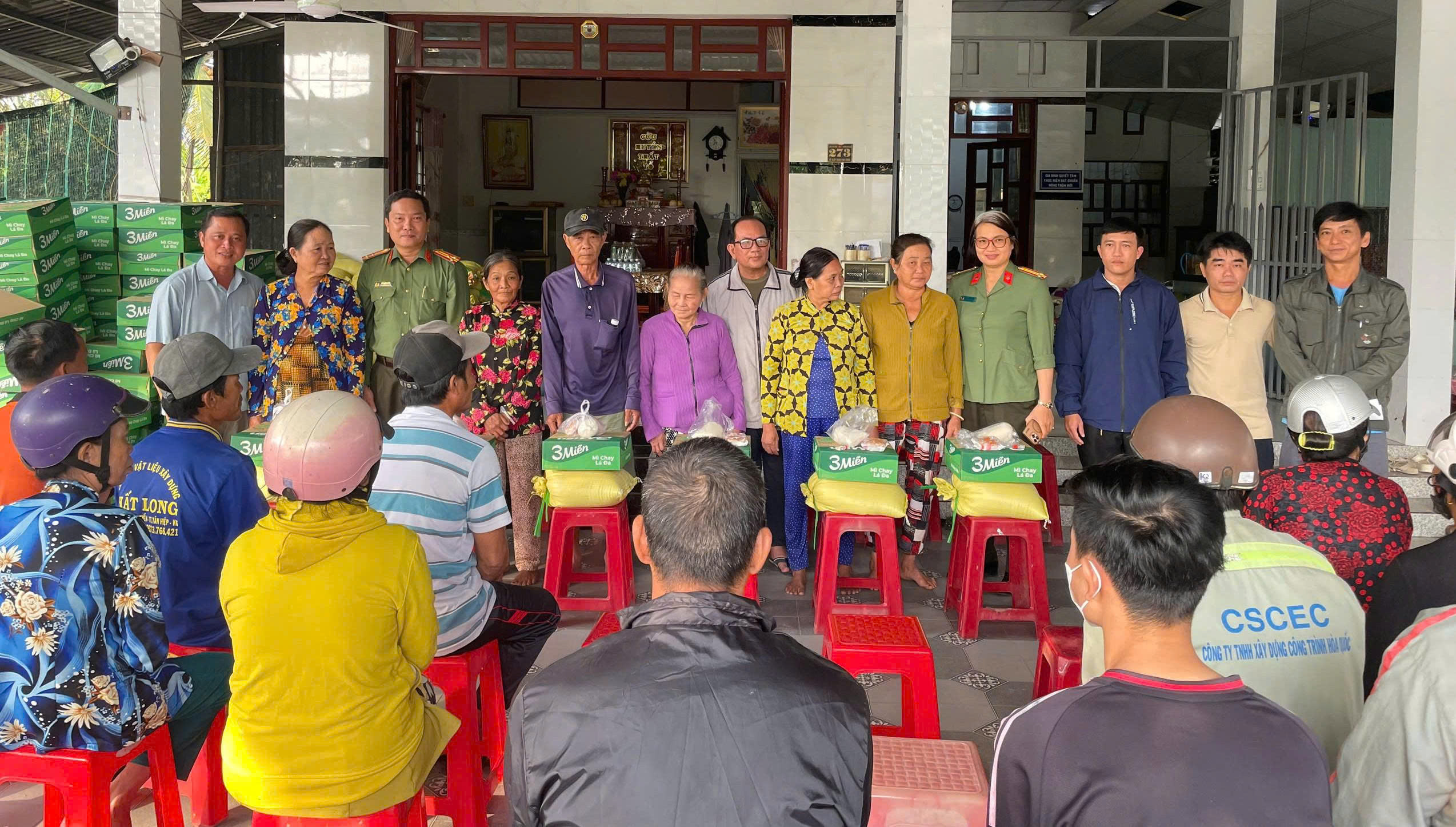 Bên cạnh việc bàn giao nhà, đơn vị còn trao tặng nhiều phần quà thiết yếu như đồ gia dụng, nhu yếu phẩm phục vụ sinh hoạt hằng ngày cho các hộ gia đình. Dịp này, các đơn vị phối hợp trao 200 suất quà, tổng trị giá 50 triệu đồng, đến các hộ dân có hoàn cảnh khó khăn tại xã Giồng Riềng, thể hiện sự quan tâm, chia sẻ của lực lượng Công an đối với Nhân dân, nhất là trong dịp Tết cổ truyền sắp đến.