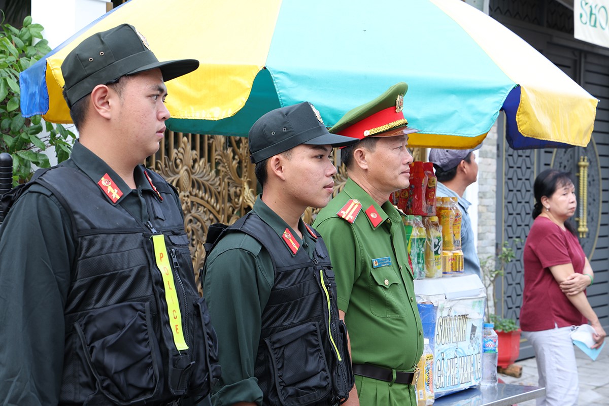 Lực lượng Công an bảo vệ ANTT tại khu vực bỏ phiếu số 39, phường Long Xuyên. - Ảnh: Tiến Tầm.