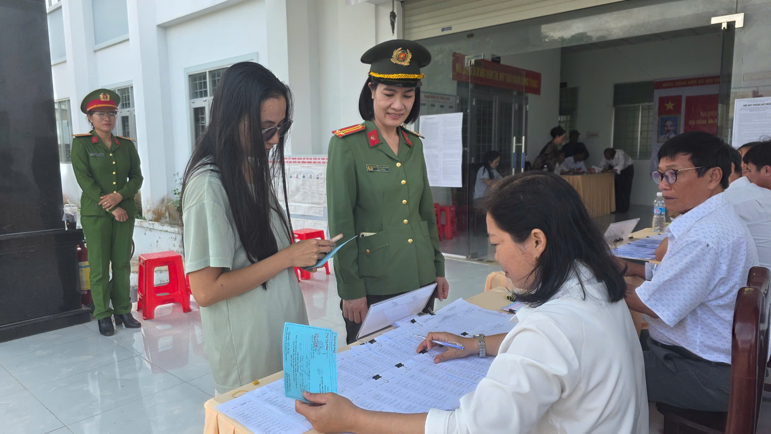 Lực lượng Công an hướng dẫn cử tri làm thủ tục trước khi bỏ phiếu.
