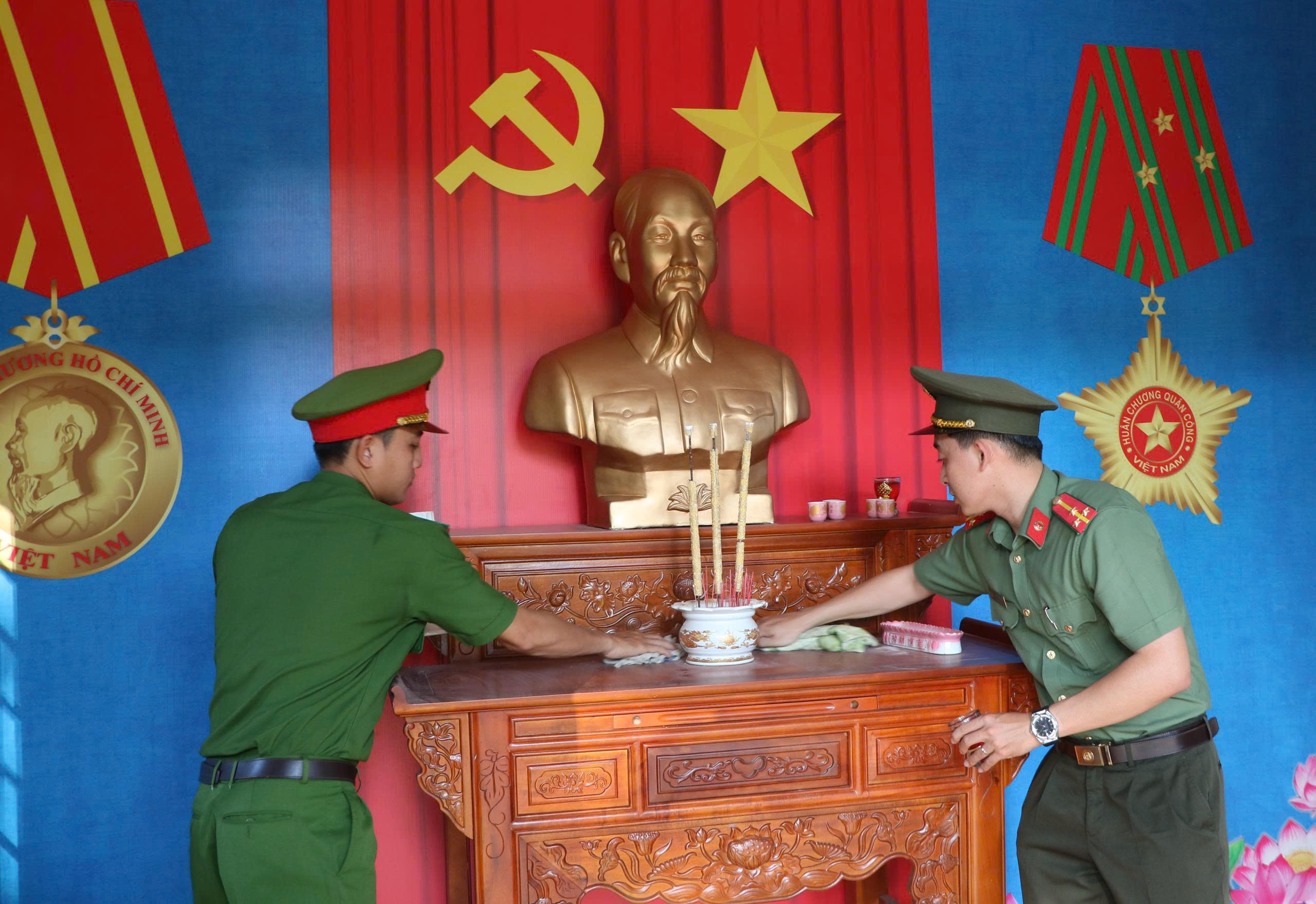 Cũng trong dịp này, cán bộ, chiến sĩ Công an tỉnh An Giang đã tổ chức dọn dẹp, vệ sinh, dâng hoa, dâng hương Nhà Truyền thống Công an tỉnh, góp phần gìn giữ cảnh quan, môi trường sạch đẹp, qua đó thể hiện tinh thần trách nhiệm, ý thức trân trọng lịch sử, quyết tâm gìn giữ và phát huy giá trị các công trình truyền thống của lực lượng.