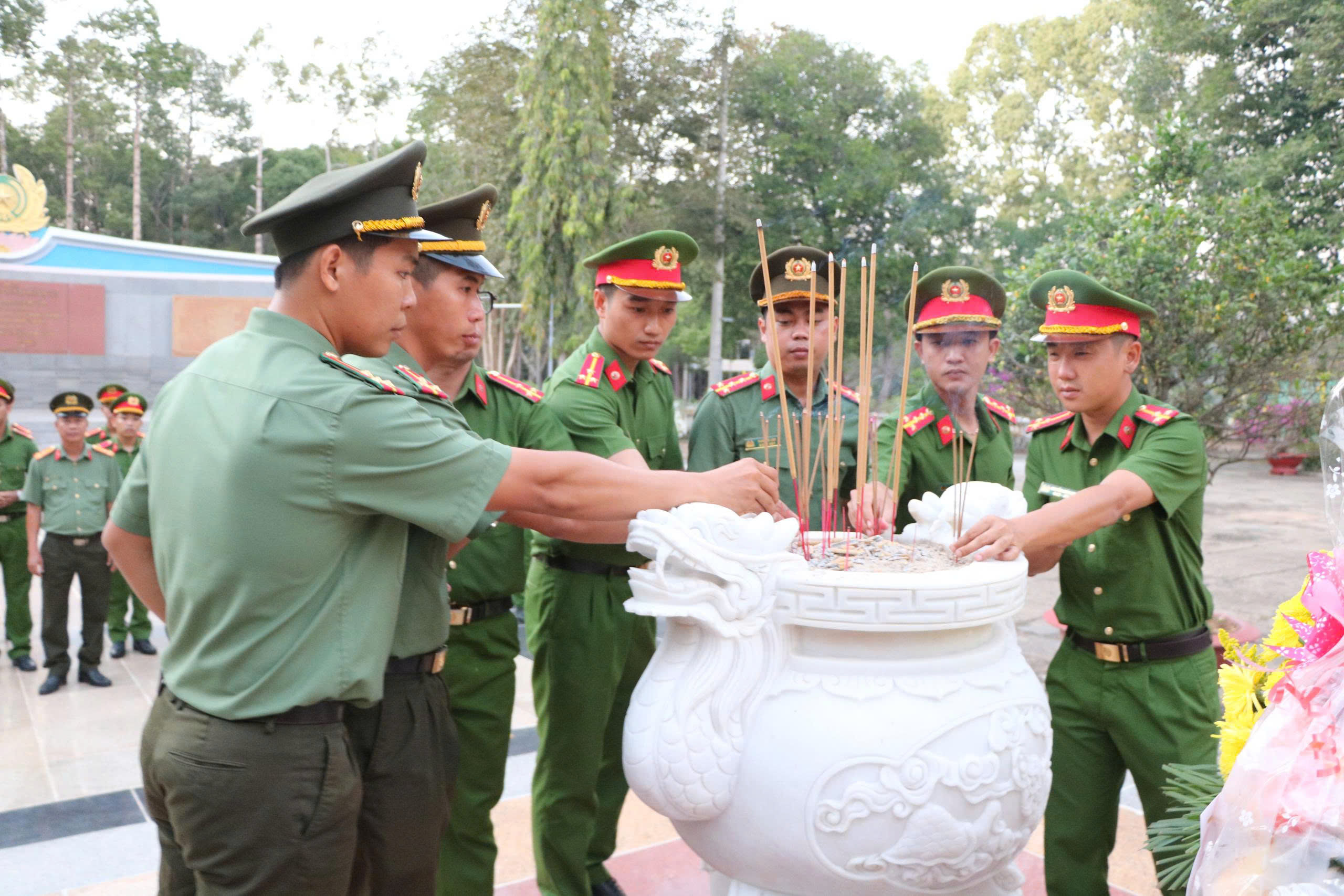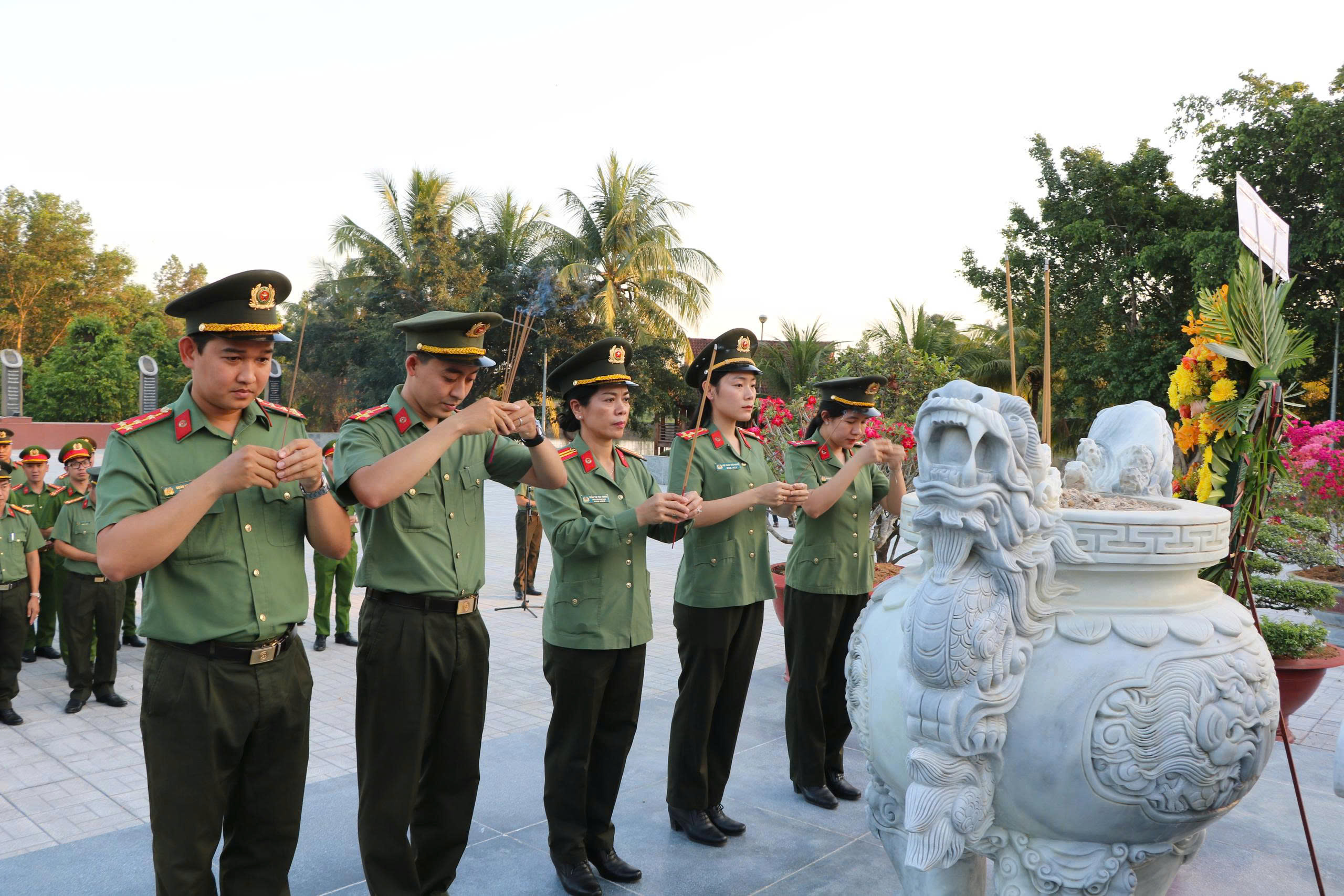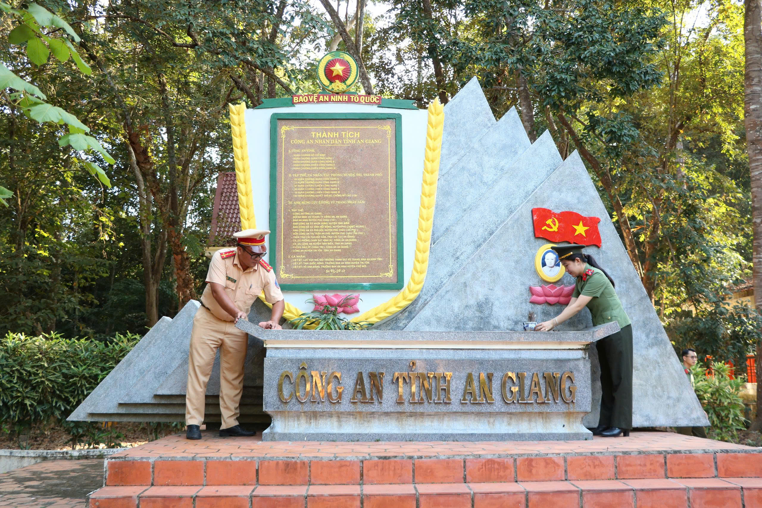 Trong khuôn khổ chuyến công tác, Đoàn đã thành kính tổ chức dâng hương, dâng hoa tại Tượng đài Bảo vệ an ninh Tổ quốc; Bia ghi công liệt sĩ Công an nhân dân; Nhà Truyền thống Công an nhân dân và Tượng đài Chủ tịch Hội đồng Bộ trưởng Phạm Hùng. Trước anh linh các anh hùng liệt sĩ, các bậc tiền bối cách mạng, cán bộ, chiến sĩ Công an tỉnh An Giang bày tỏ lòng biết ơn sâu sắc, sự tri ân thành kính đối với những cống hiến, hy sinh to lớn cho sự nghiệp đấu tranh giải phóng dân tộc, bảo vệ an ninh quốc gia, giữ gìn trật tự, an toàn xã hội và xây dựng lực lượng Công an nhân dân ngày càng vững mạnh.