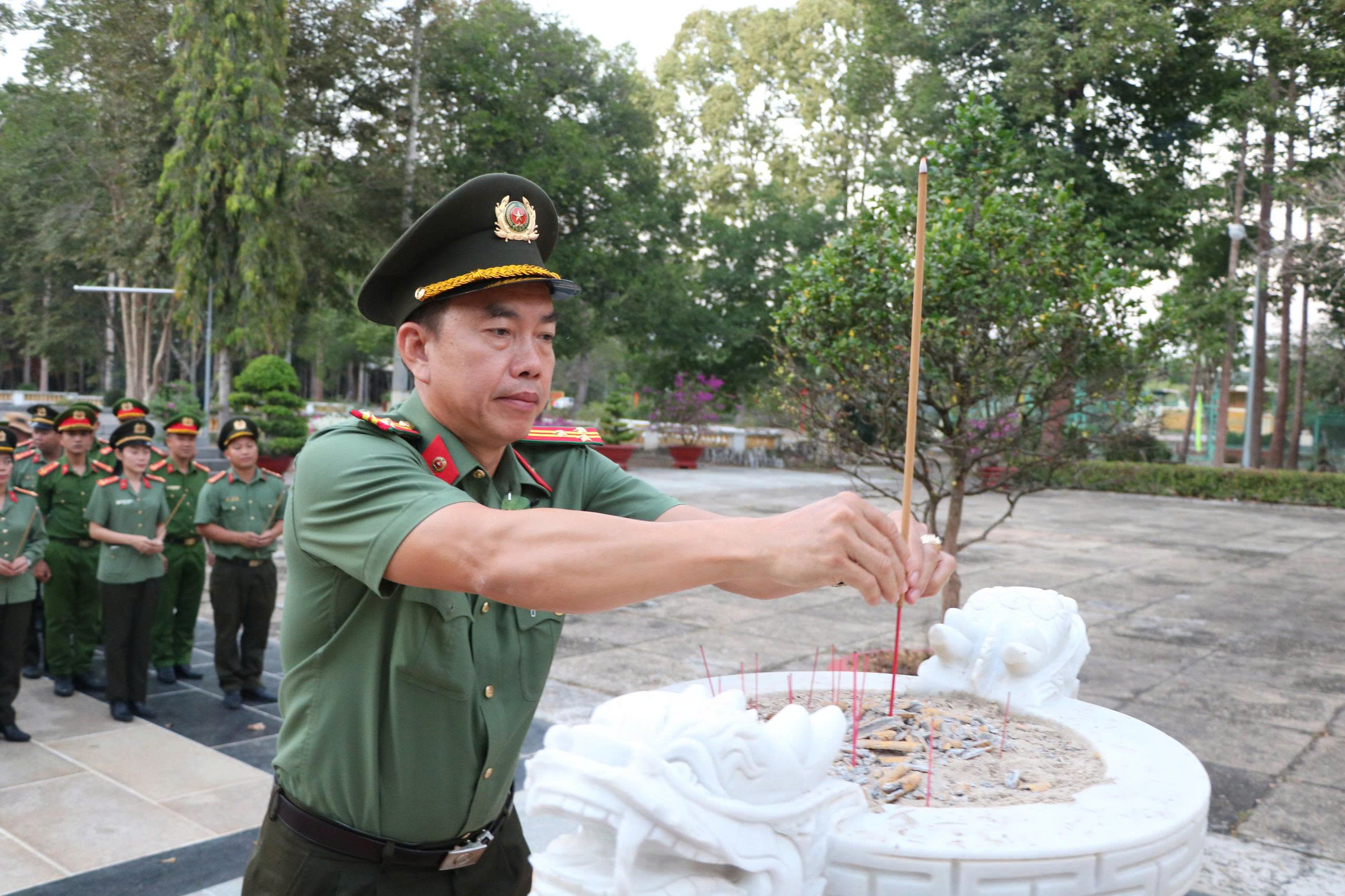 Công an tỉnh An Giang dâng hương, dâng hoa các công trình truyền thống và thăm, chúc Tết Ban Quản lý Khu Di tích lịch sử Căn cứ Ban An ninh Trung ương Cục miền Nam