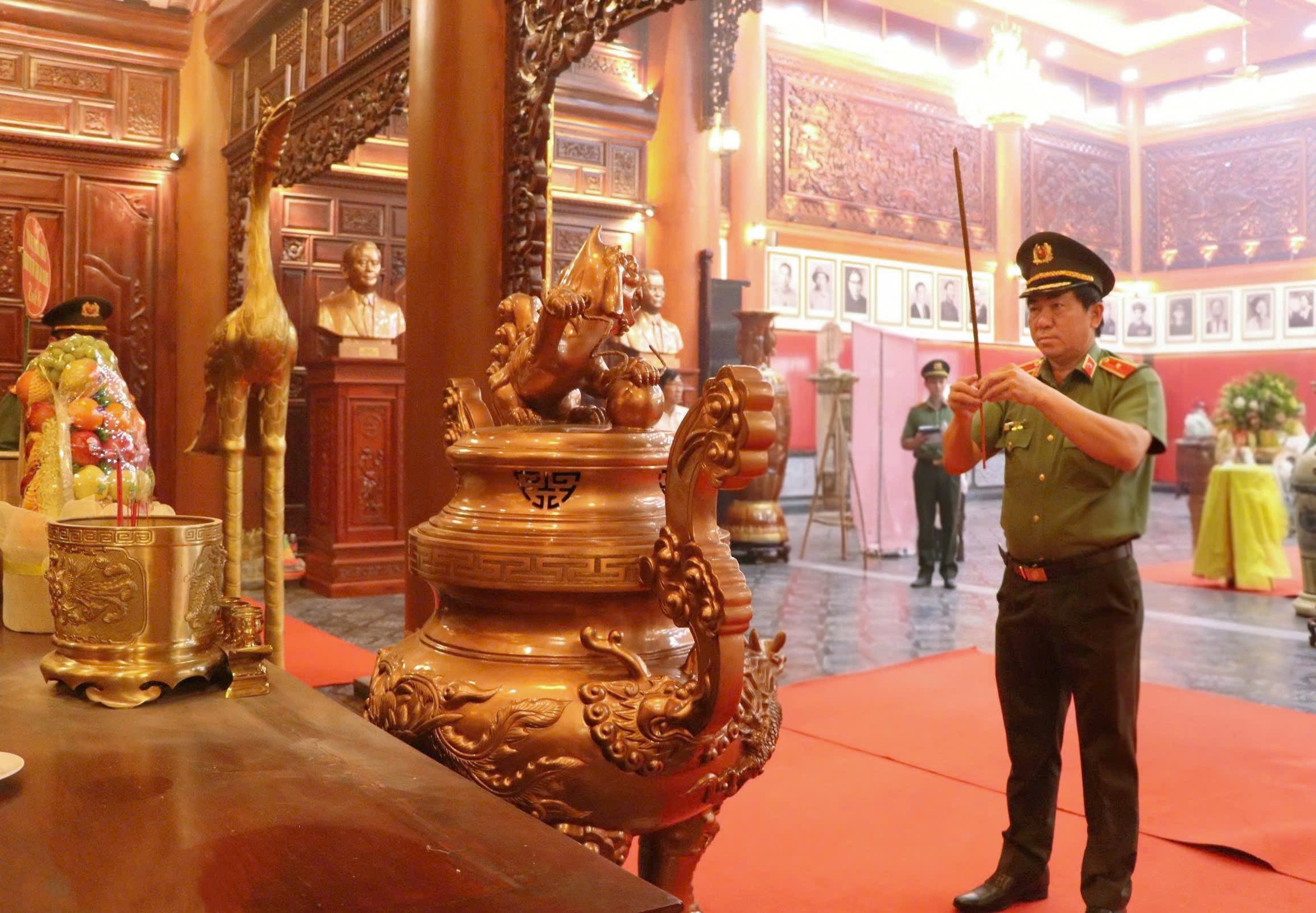 Thiếu tướng Nguyễn Văn Hận – Ủy viên Ban Thường vụ Tỉnh ủy, Bí thư Đảng ủy, Giám đốc dâng hương tưởng niệm Chủ tịch Hồ Chí Minh tại trụ sở Công an tỉnh.