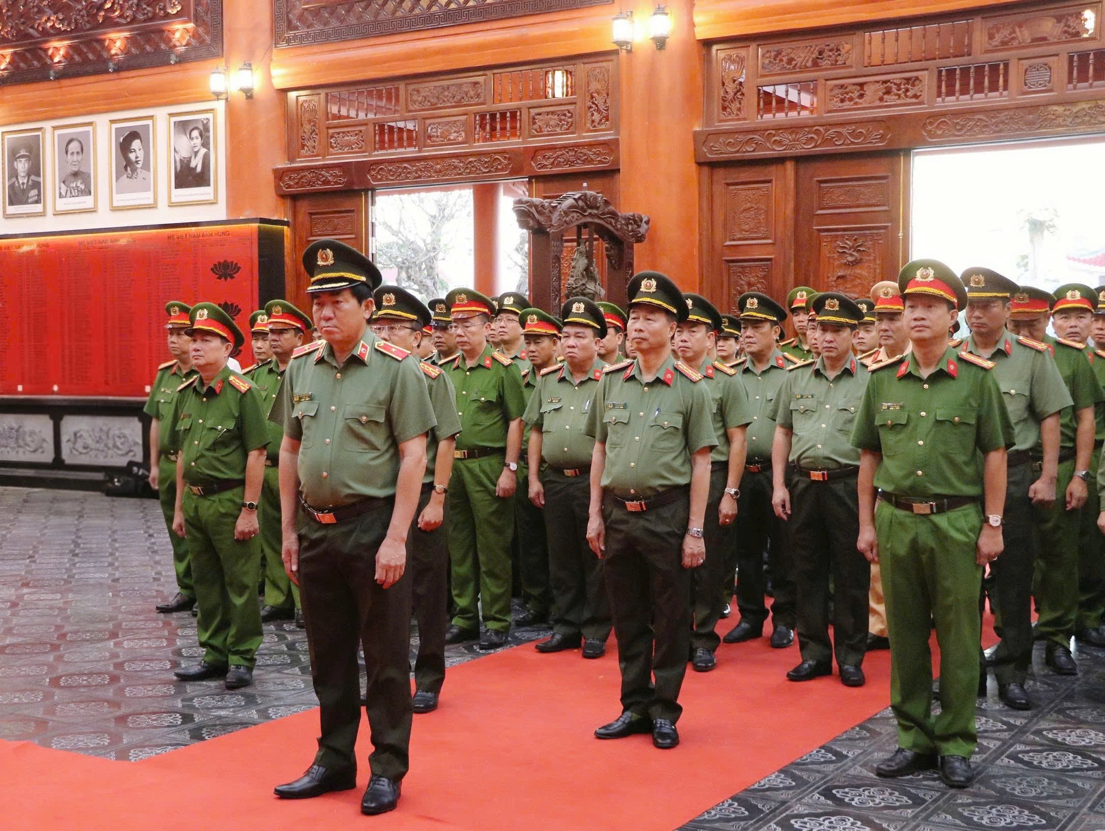 Đoàn công tác Công an tỉnh mặc niệm tưởng nhớ công lao to lớn của Chủ tịch Hồ Chí Minh và các Anh hùng liệt sĩ.