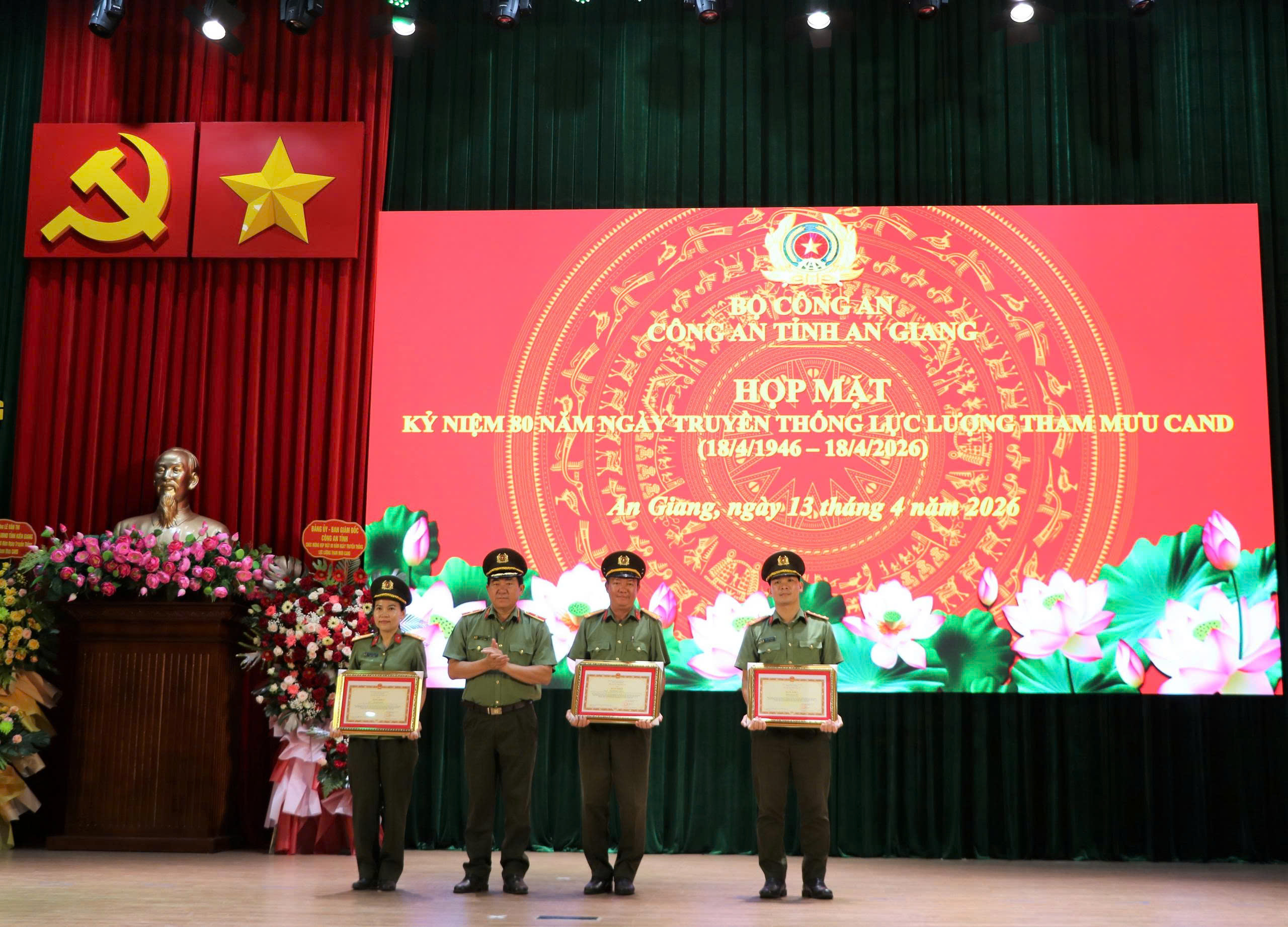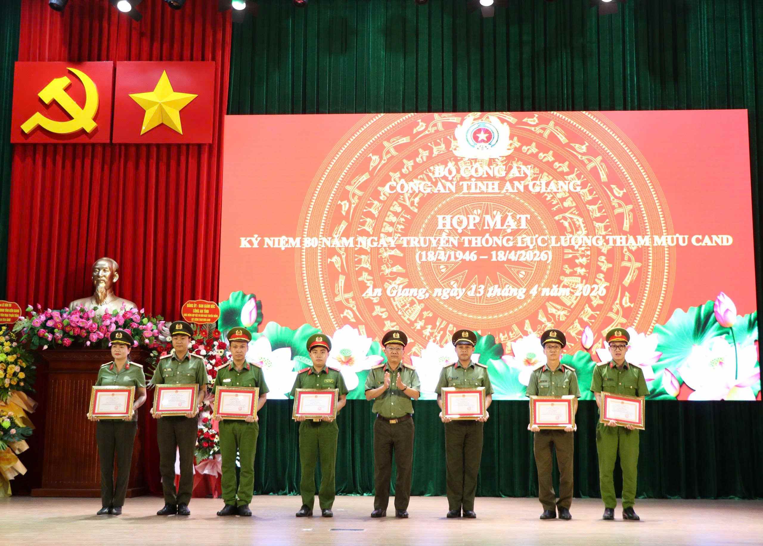 Dịp này, Bộ Công an tặng Bằng khen cho 01 tập thể và 02 cá nhân có thành tích xuất sắc, đột xuất trong phong trào thi đua đặc biệt lập thành tích chào mừng Đại hội Đảng bộ Công an Trung ương lần thứ VIII, Đại hội Đảng toàn quốc lần thứ XIV và kỷ niệm 80 năm Ngày truyền thống lực lượng Tham mưu Công an nhân dân. Bên cạnh đó, Giám đốc Công an tỉnh trao Giấy khen cho 07 tập thể và 07 cá nhân đạt giải Nhất, Nhì, Ba trong Cuộc thi tìm hiểu 80 năm Ngày truyền thống lực lượng Tham mưu Công an nhân dân (18/4/1946 – 18/4/2026)./.