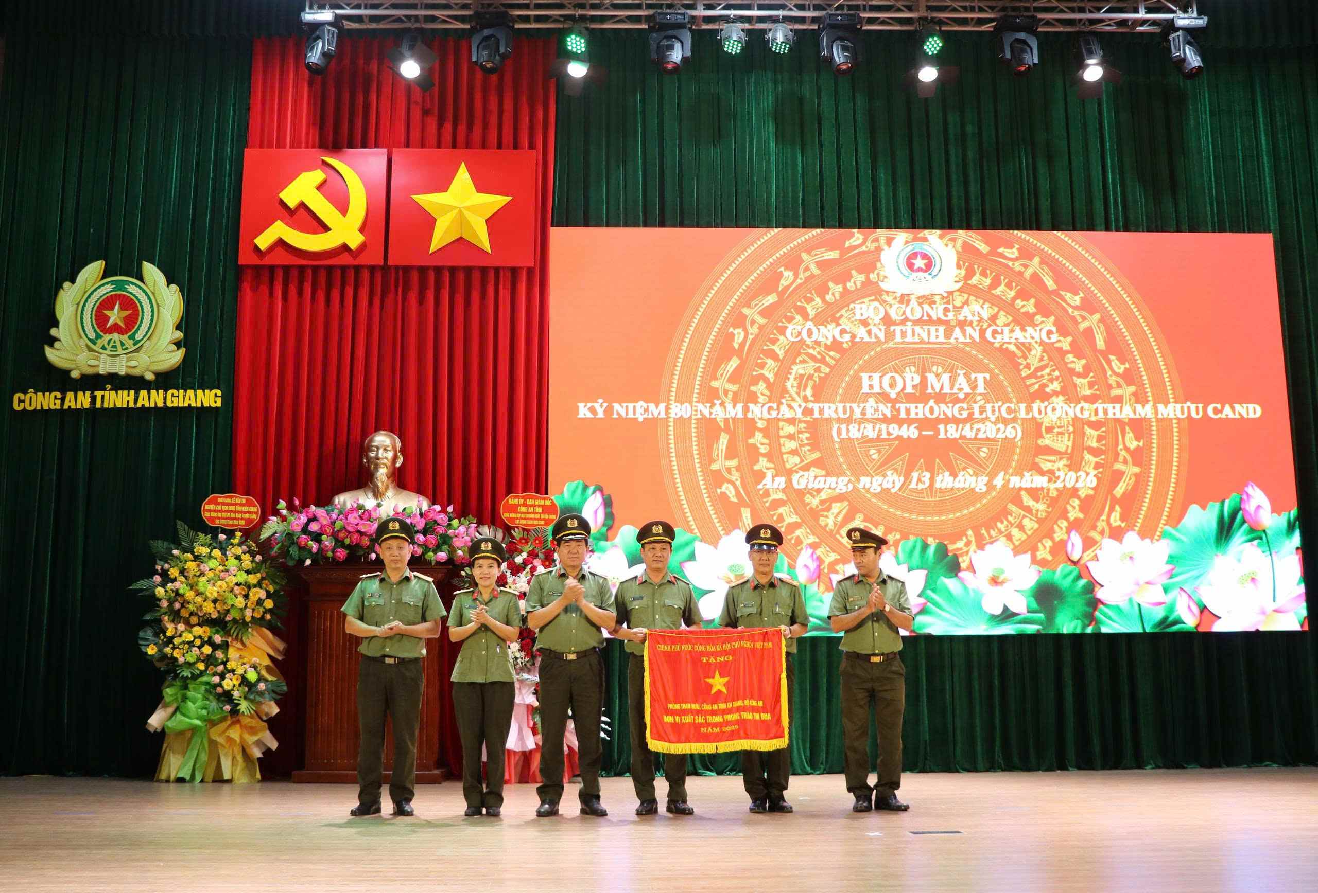 Nhằm ghi nhận, biểu dương những nỗ lực, phấn đấu và kết quả đạt được trong thực hiện nhiệm vụ công tác, tại buổi họp mặt, đồng chí Thiếu tướng Nguyễn Văn Hận đã trao Cờ thi đua của Chính phủ cho tập thể Phòng Tham mưu Công an tỉnh An Giang vì có thành tích xuất sắc, dẫn đầu phong trào thi đua “Vì an ninh Tổ quốc”, góp phần quan trọng vào công tác bảo vệ an ninh quốc gia, bảo đảm trật tự, an toàn xã hội năm 2025.