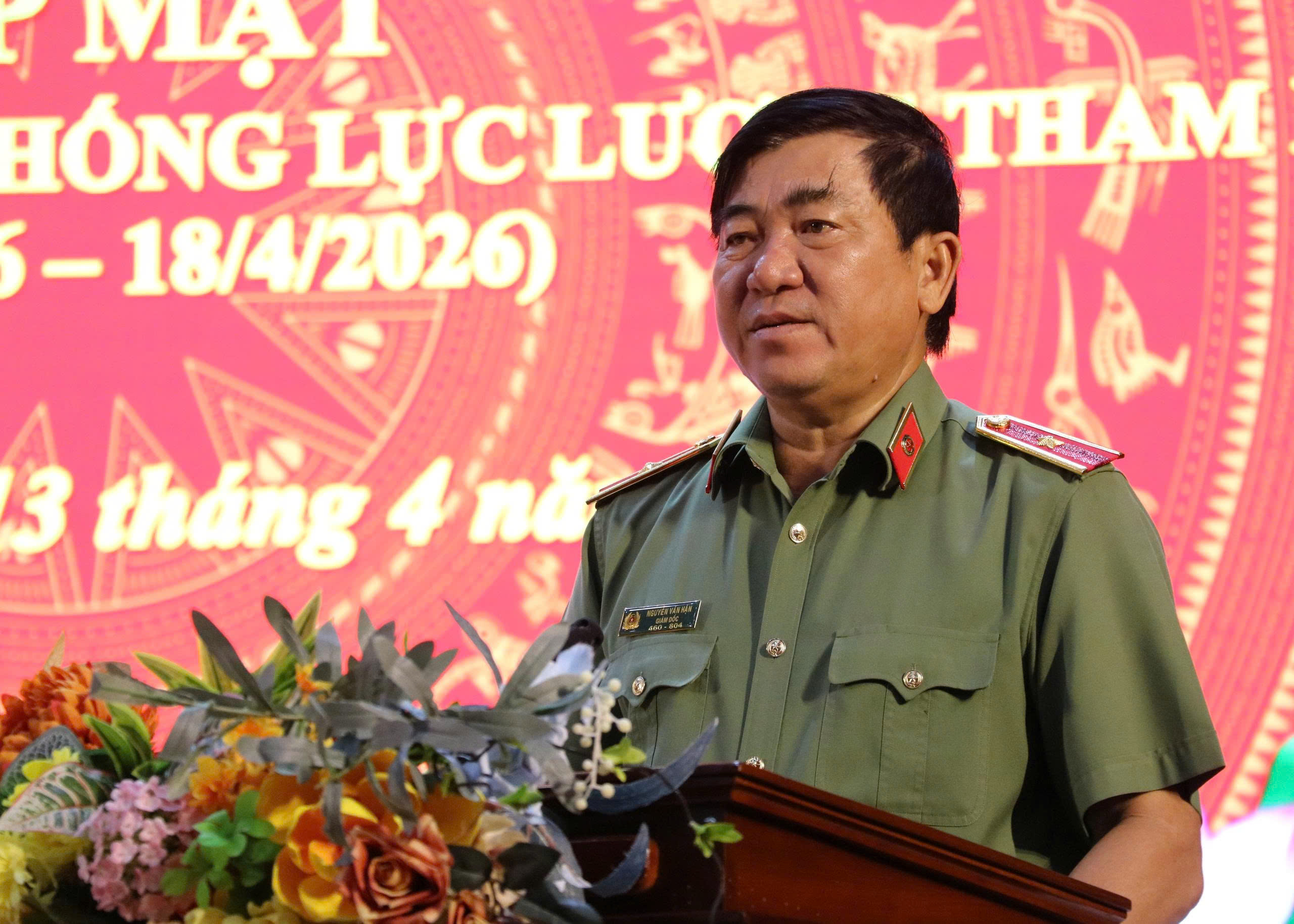 Thiếu tướng Nguyễn Văn Hận, Ủy viên Ban Thường vụ Tỉnh ủy, Giám đốc Công an tỉnh phát biểu chỉ đạo tại buổi họp mặt