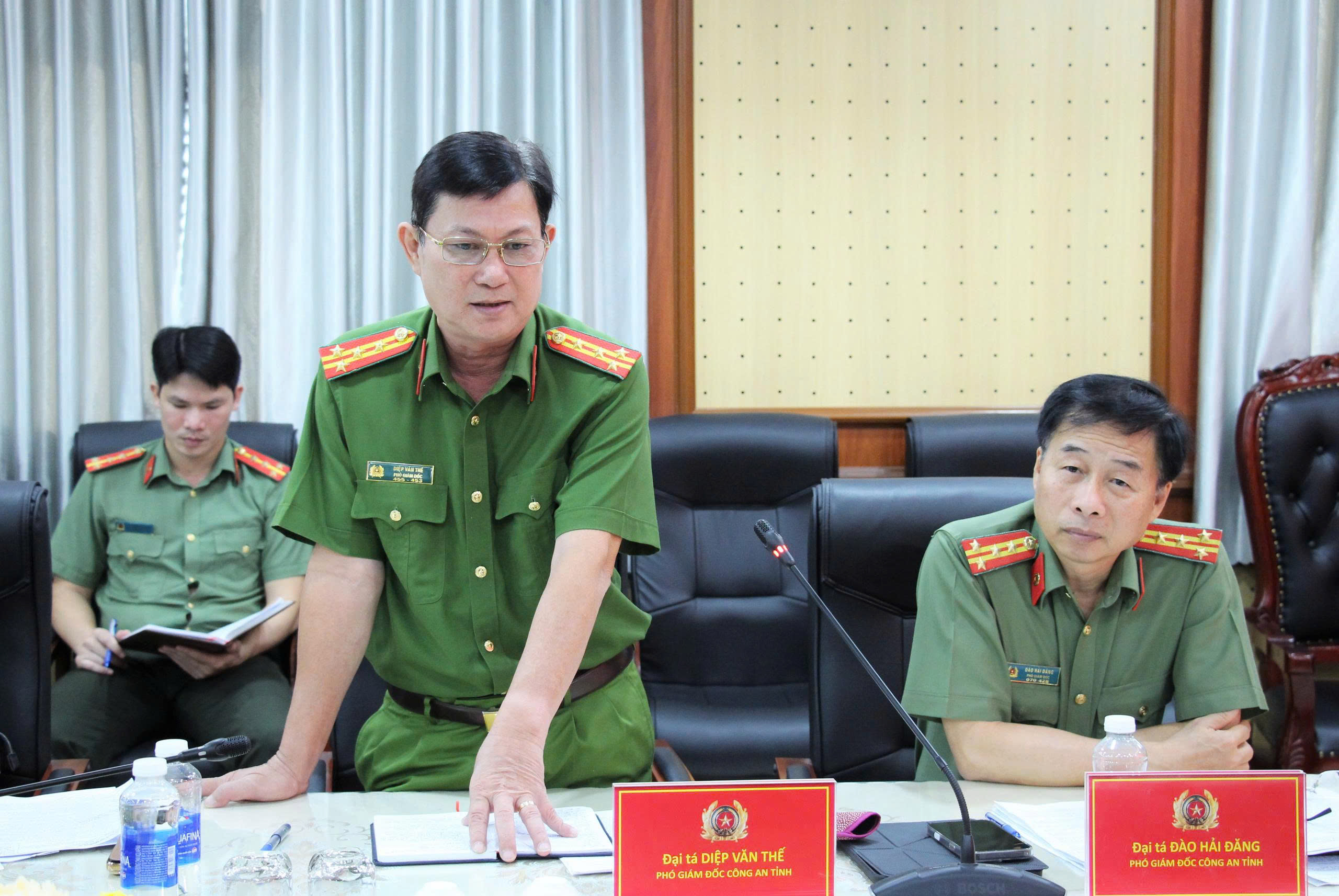Đồng chí Đại tá Diệp Văn Thế, Phó Giám đốc Công an tỉnh phát biểu tại Hội nghị.