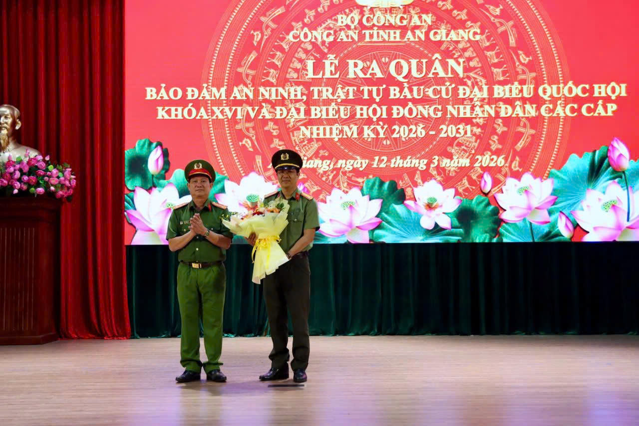 Sáng ngày 12/3/2026, Công an tỉnh An Giang tổ chức Lễ ra quân bảo đảm an ninh, trật tự cho công tác bầu cử đại biểu Quốc hội khoá XVI và đại biểu Hội đồng nhân dân các cấp nhiệm kỳ 2026 – 2031. Chủ trì Lễ ra quân có Đại tá Diệp Văn Thế, Phó Giám đốc Công an tỉnh.