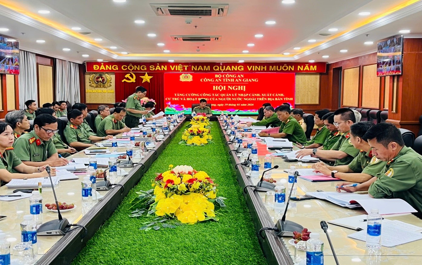 Tại Hội nghị tăng cường công tác quản lý nhập cảnh, xuất cảnh, cư trú và hoạt động của người nước ngoài trên địa bàn tỉnh diễn ra vào ngày 19/01/2026, các đại biểu đã nghe báo cáo tình hình cư trú, tiếp nhận, quản lý, khai thác thông tin khai báo tạm trú, cách thức xác thực thông tin cho người nước ngoài trên địa bàn tỉnh và kết quả 15 ngày thực hiện cao điểm bảo đảm ANTT trước trong và sau Đại hội Đảng lần thứ XIV, bầu cử Hội đồng nhân dân các cấp và bầu cử Quốc hội khóa XVI và Tết Nguyên đán Bính Ngọ 2026. Kết quả đã thực hiện kiểm tra 16 cơ sở, phát hiện 31/59 trường hợp người nước ngoài vi phạm và xử phạt hành chính trên 280 triệu đồng. Cũng tại Hội nghị, các đại biểu đã thảo luận đánh giá những tồn tại trong thực hiện công tác liên quan đến lĩnh vực xuất nhập cảnh, đề xuất những giải pháp nhằm nâng cao hiệu quả công tác quản lý quản lý lưu trú người nước ngoài.