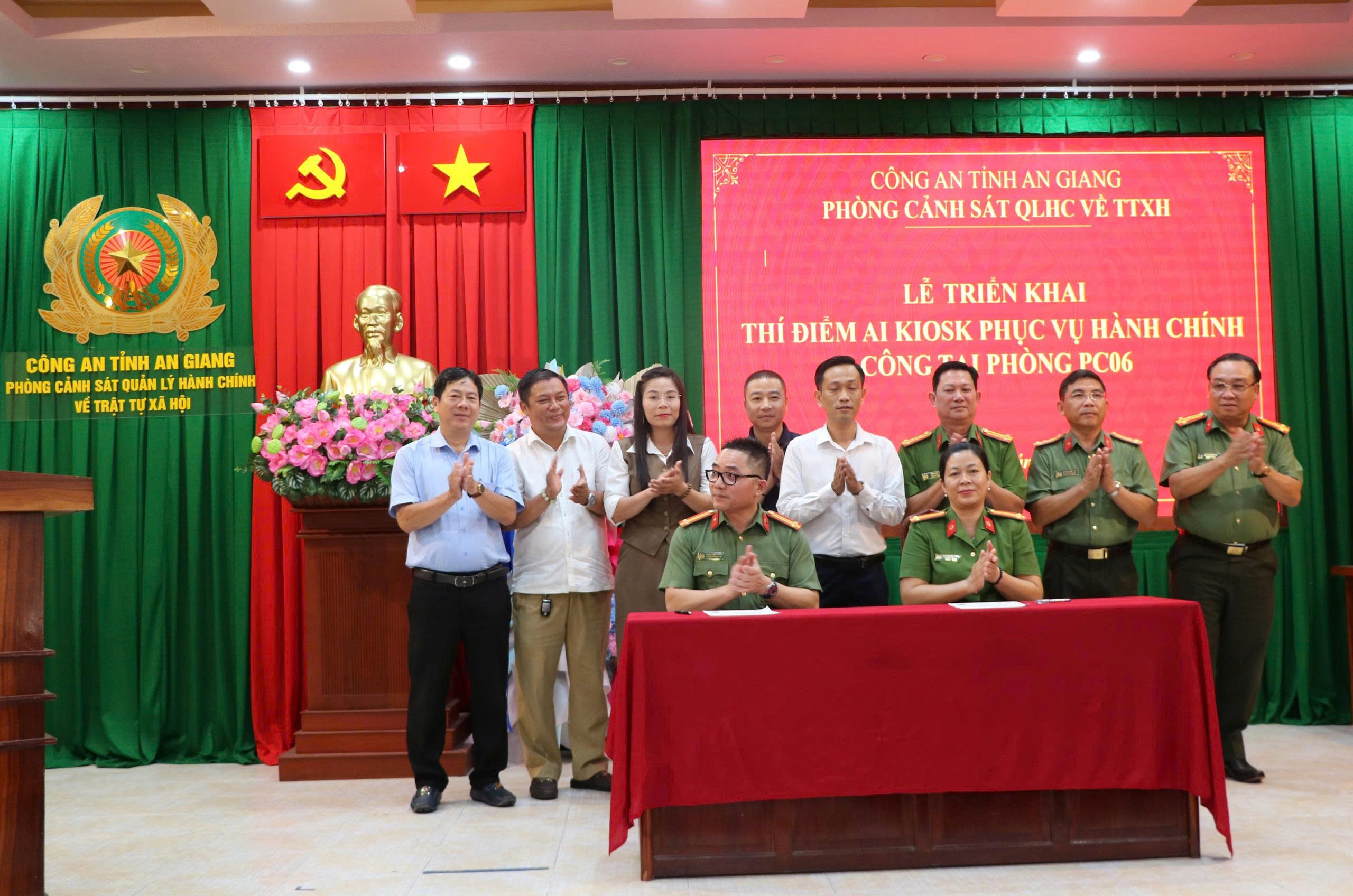 Ngày 13/4, Phòng Cảnh sát quản lý hành chính về trật tự xã hội, Công an tỉnh An Giang phối hợp với Công ty TNHH MTV 990 tổ chức lễ triển khai thí điểm Kiosk phục vụ hành chính công tại trụ sở đơn vị. Đại tá Diệp Văn Thế, Phó Giám đốc Công an tỉnh dự và chủ trì buổi lễ, cùng dự có Trung tá Phạm Hoàng Long, Giám đốc xí nghiệp FTC - Công ty TNHH MTV 990.