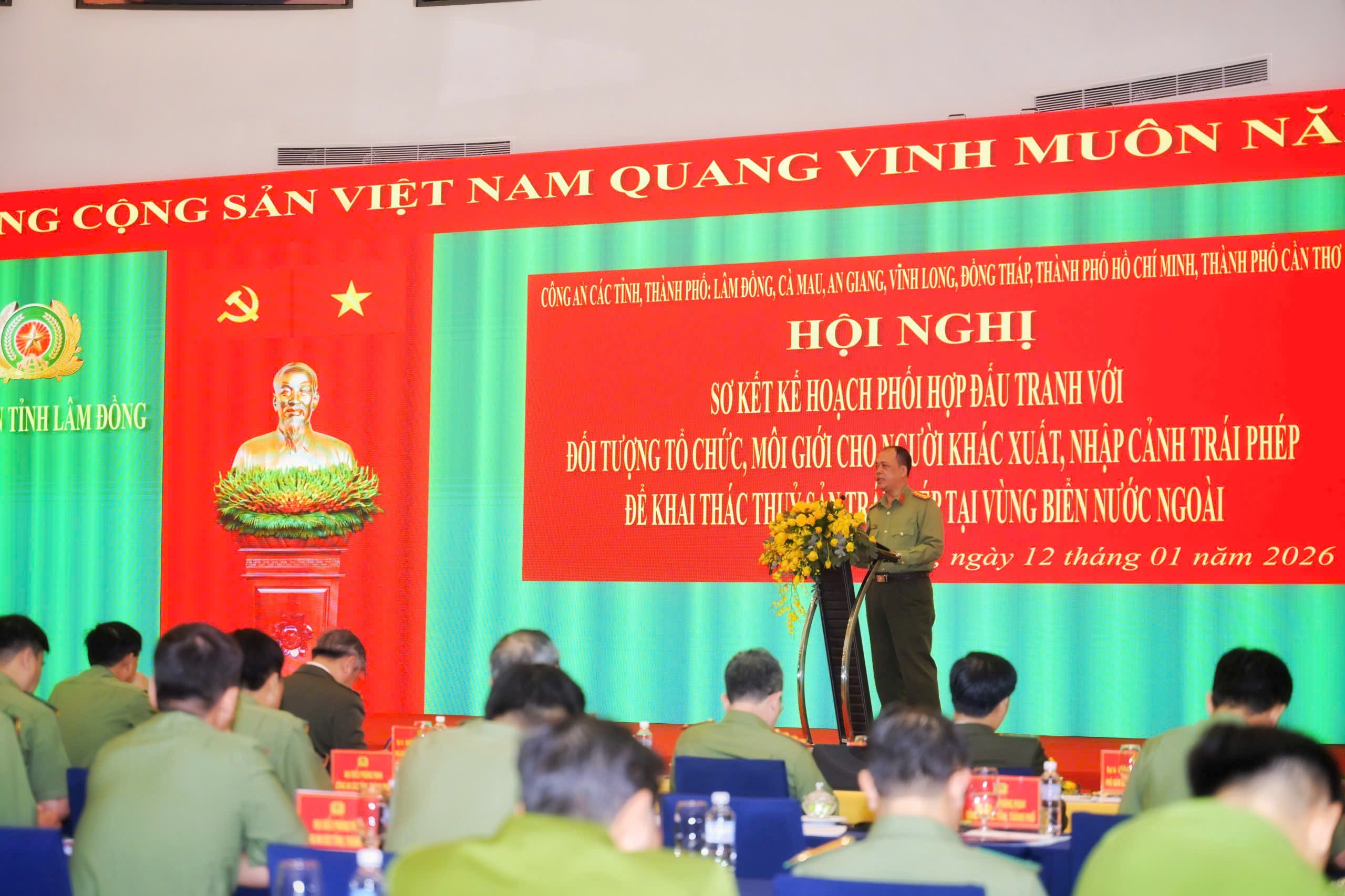 ‎Sáng 12/01/2026, tại Công an tỉnh Lâm Đồng, Đoàn công tác của Công an tỉnh An Giang do Đồng chí Đại tá Đào Hải Đăng - Phó Giám đốc Công an tỉnh trưởng đoàn tham dự Hội nghị Sơ kết kế hoạch phối hợp đấu tranh với các đối tượng tổ chức, môi giới cho người khác xuất, nhập cảnh trái phép để khai thác thủy sản tại vùng biển nước ngoài.